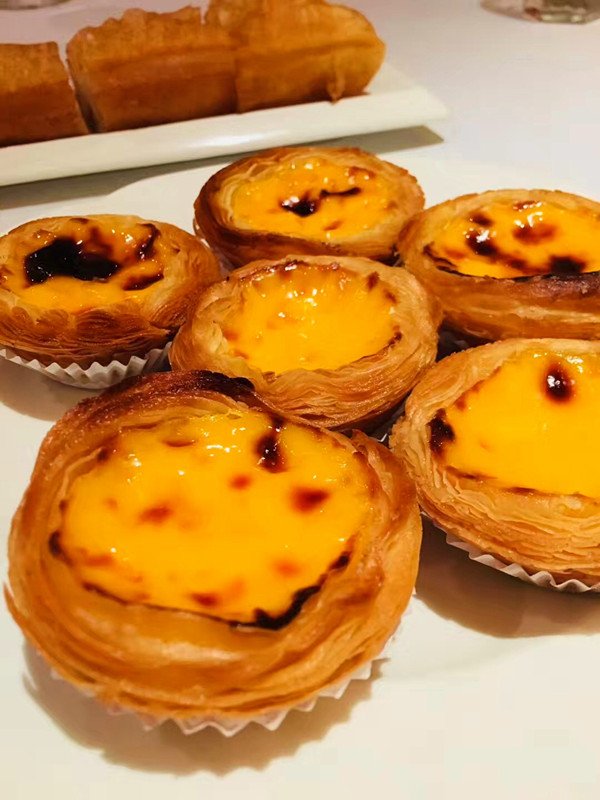 餐后建议尝下他们家的甜品,也是非常纯正的,葡式蛋挞一出炉上桌子特别的香,我们已经饱腹了但还是忍不住诱惑品尝一个。