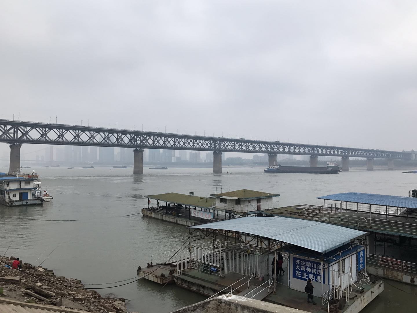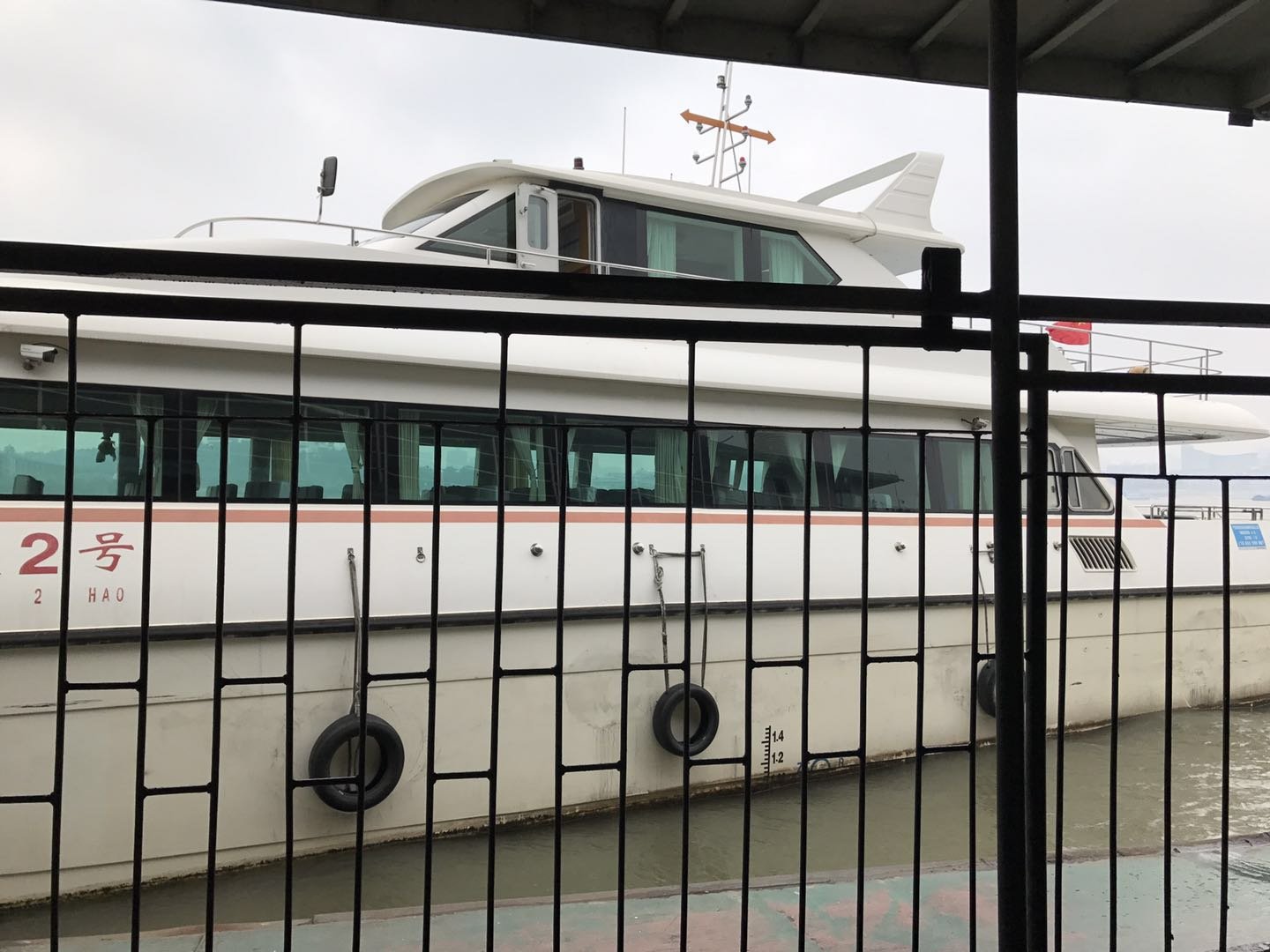 坐船的人很少,船上的椅子都很脏的感觉。。。坐船很快就到晴川阁啦。下船之后我们就看到有樱花树,然而我们还是决定先去晴川阁吧。
