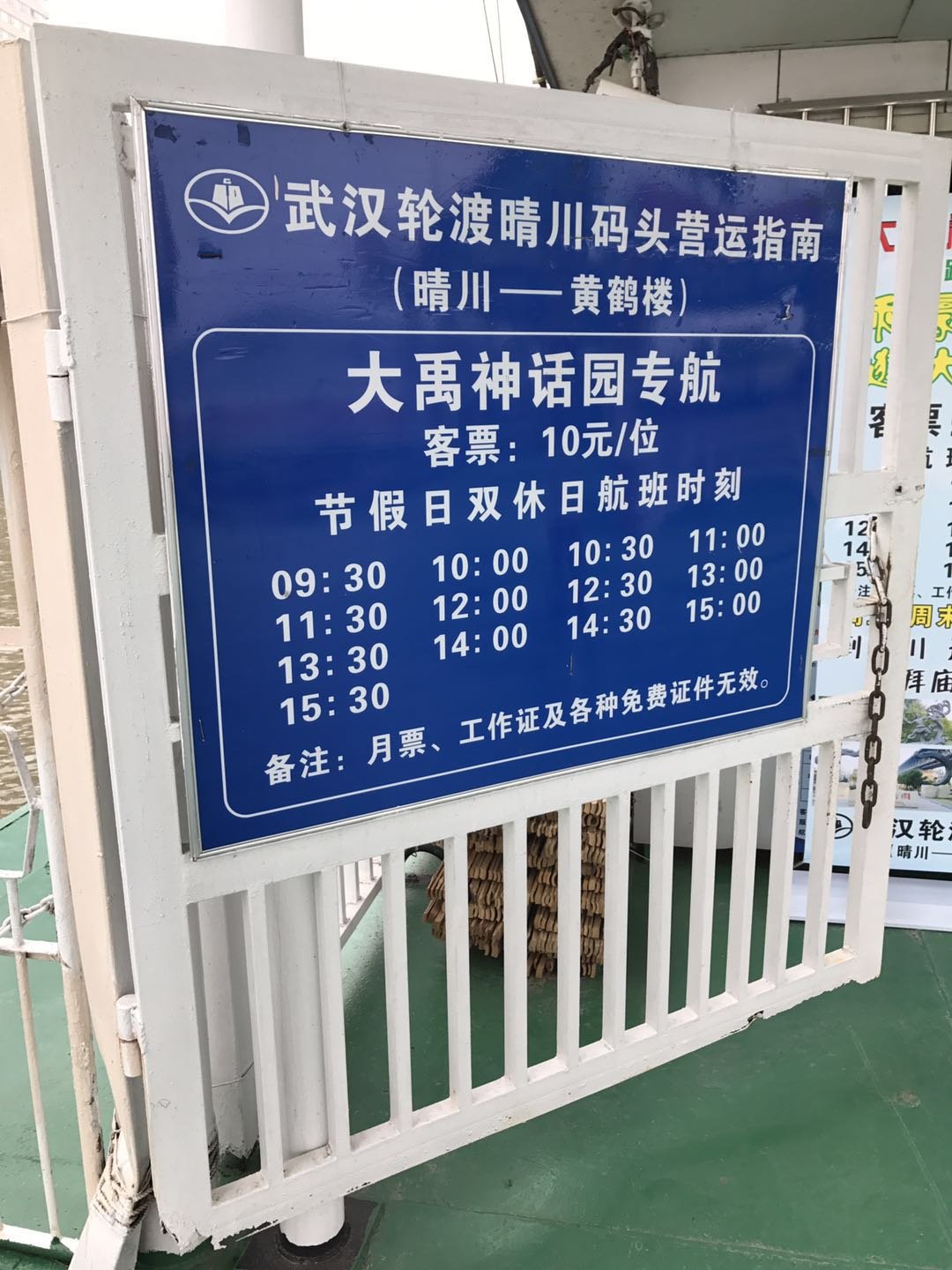 我们坐的渡轮是大禹神话园浏览专线,船票每人10块。它这里有好几个码头,每个码头去的地方都不同,大家一定要看清楚哦。去晴川阁的渡轮买票的地方是在码头里面的,不是在门口,我们还一直站在马路边等买船票,后来有一位叔叔直接走下去了,我们跟着他才知道买票在下面,不然等到天荒地老都坐不了船啊~~哈哈哈哈哈。