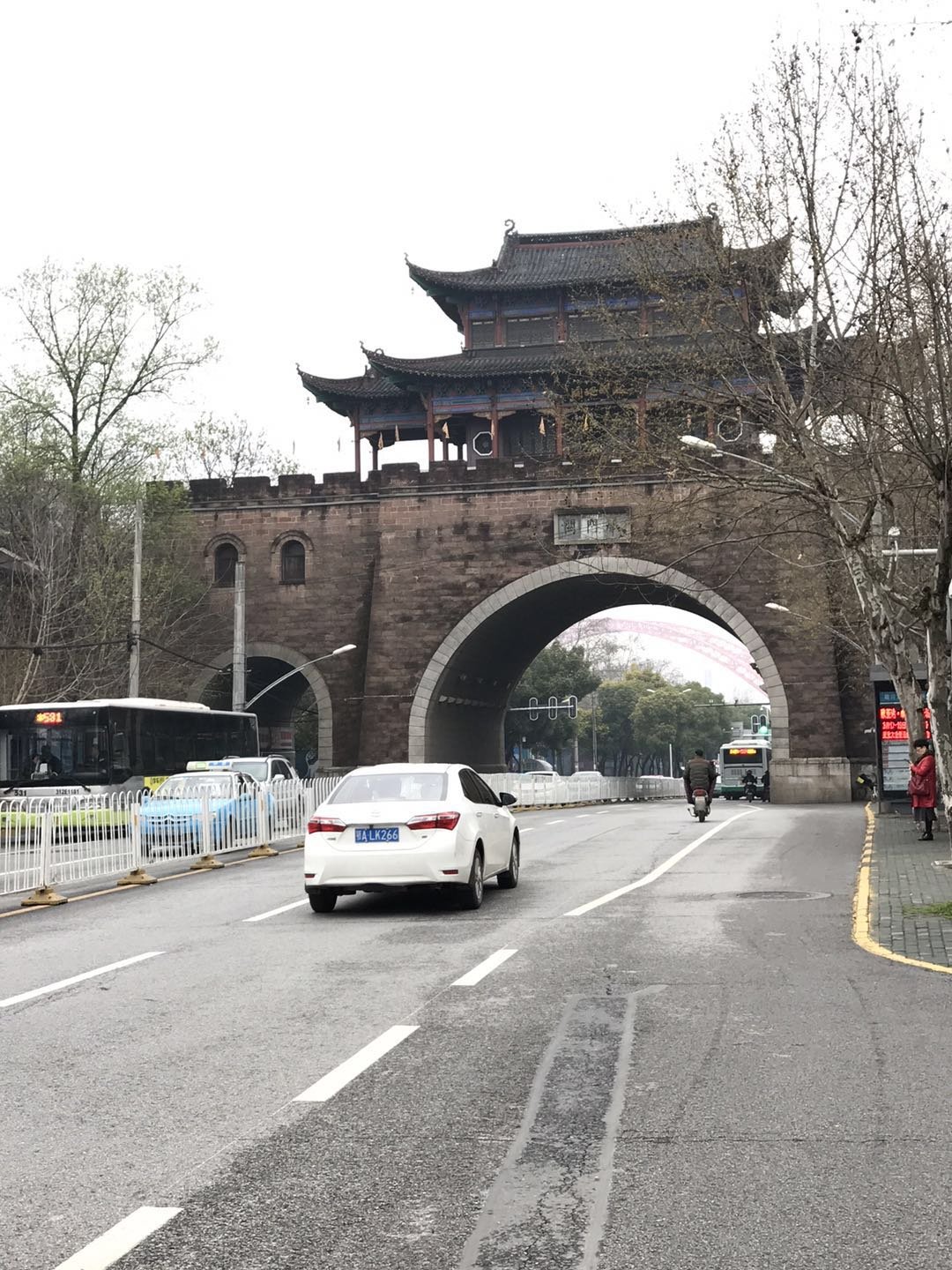 晴川阁是免费进去的,不过要刷身份证才能入园。游客也是很少。走了一会儿我们就向下船时看到的樱花走去~