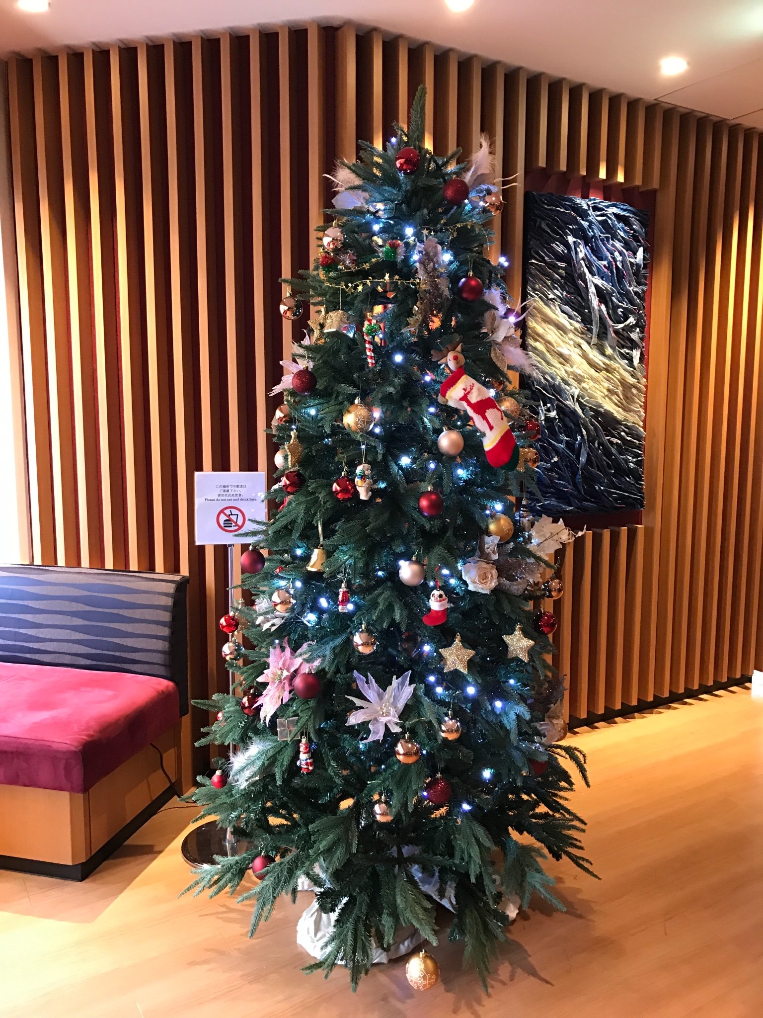 酒店的圣诞树,9点半把行李都寄存好,就出发去新宿了