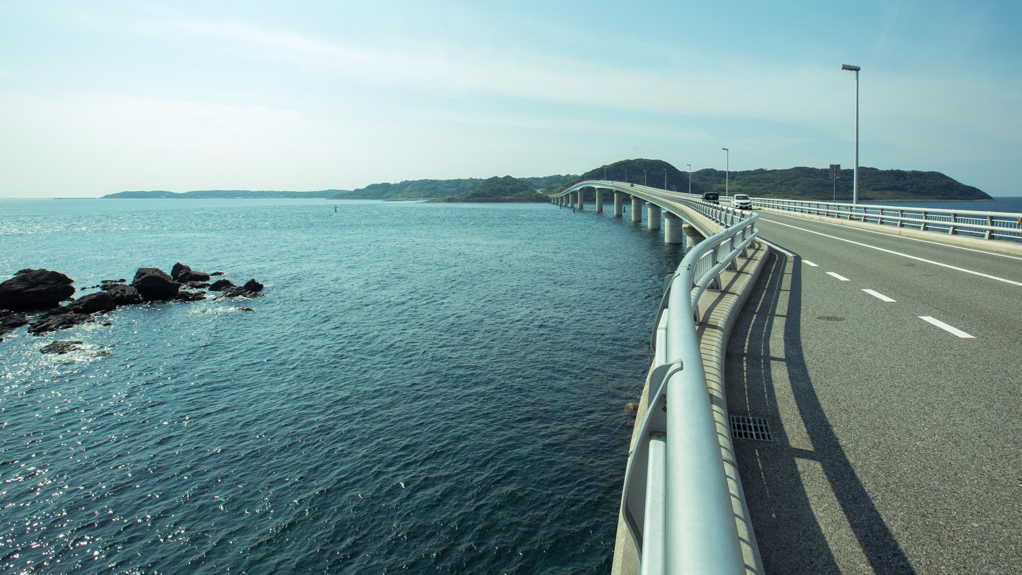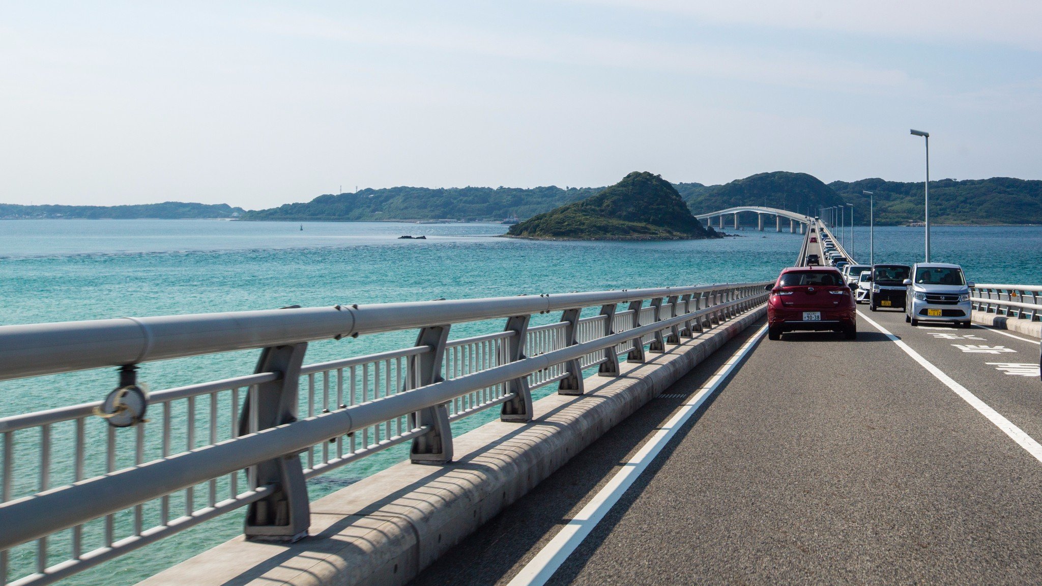 唐户市场一路向北,开一个半小时的车,到下关市的北部,就能到这里 — 角岛大桥。这里是《一生一定要去一次世界绝景》的第三位,日本第一位的景点。虽然这个地方没有车子的话很难到达,但是角岛是在日本最像画一样的地方。木村的“HERO(特别篇)”就是在这里拍摄的。
