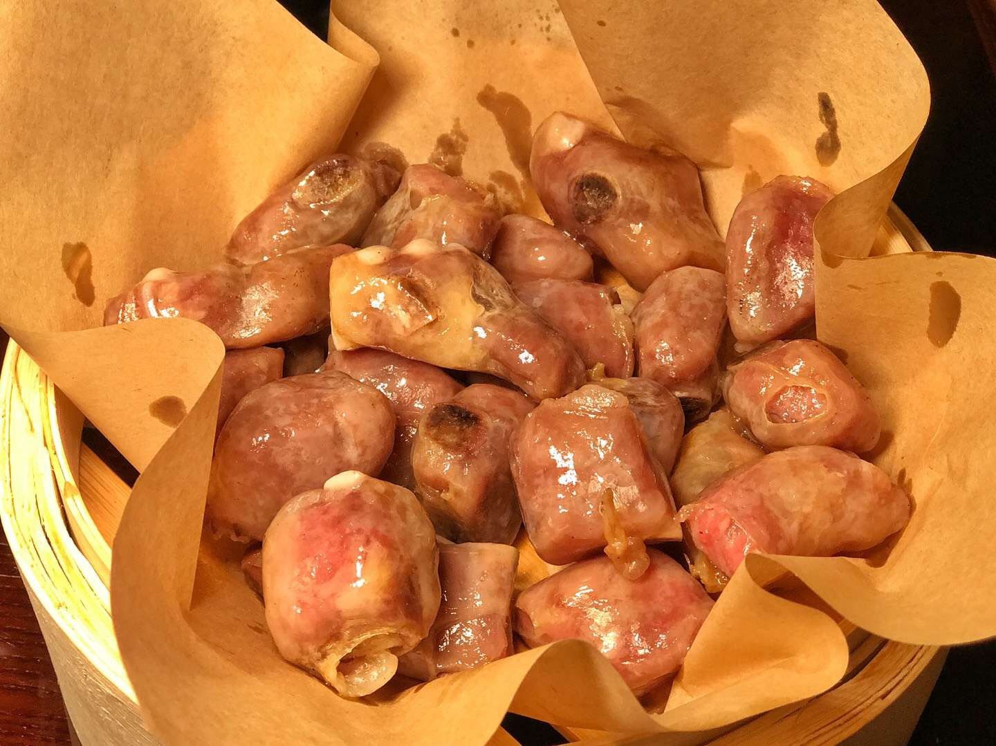 店里自制的香肠也值得点上一份品尝,切成了一小团一小团的,基本一口一个,味道有点甜有点咸,却很下饭的。