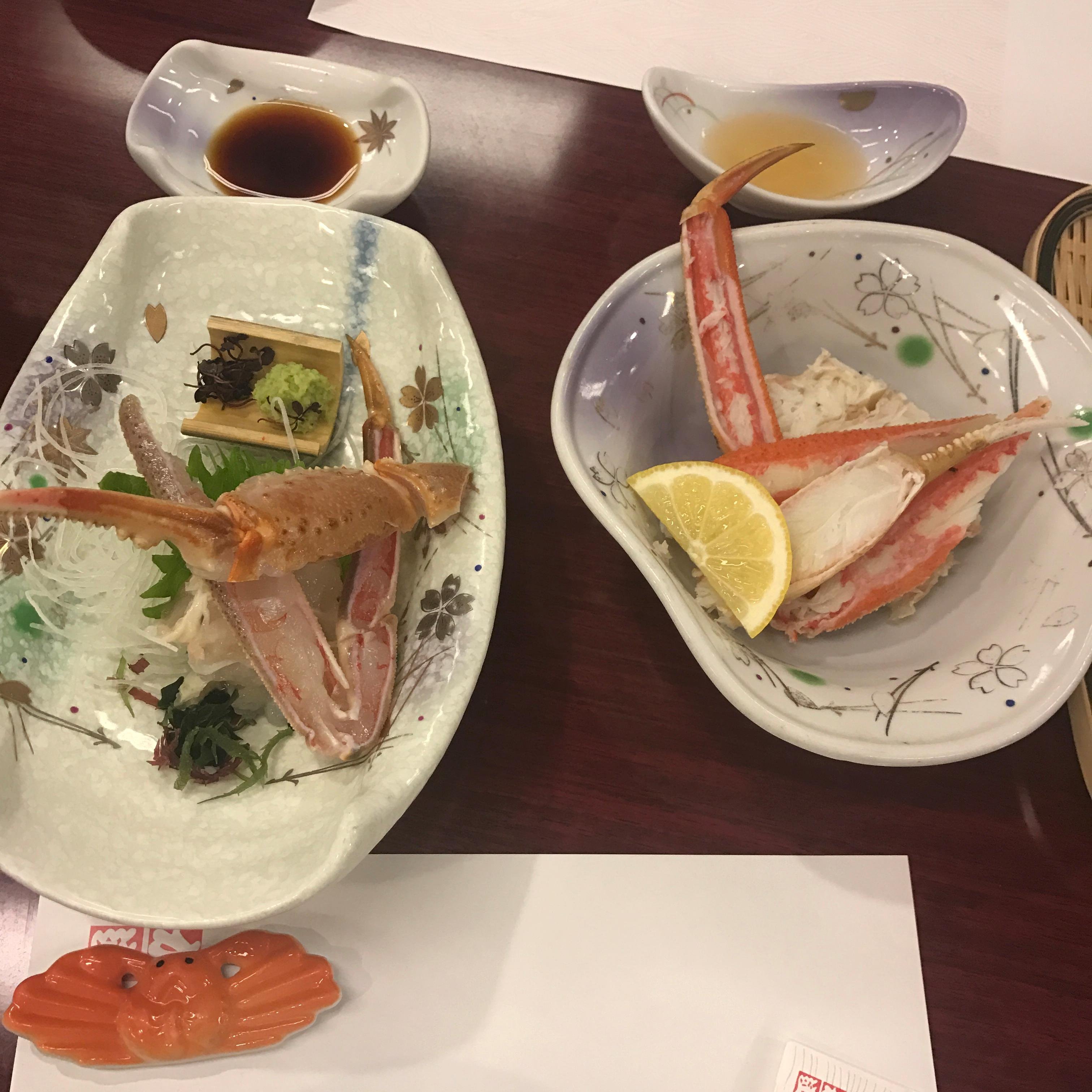 美食街第2趴:蟹道乐。去之前网上预约的,但人也挺少的,本店、东店离得很近,格力高小人、章鱼小丸子都在附近,东店是有招牌上那只大螃蟹的,很好找。我们要了个套餐,要来要来,好吃,满足!【10000+日元】