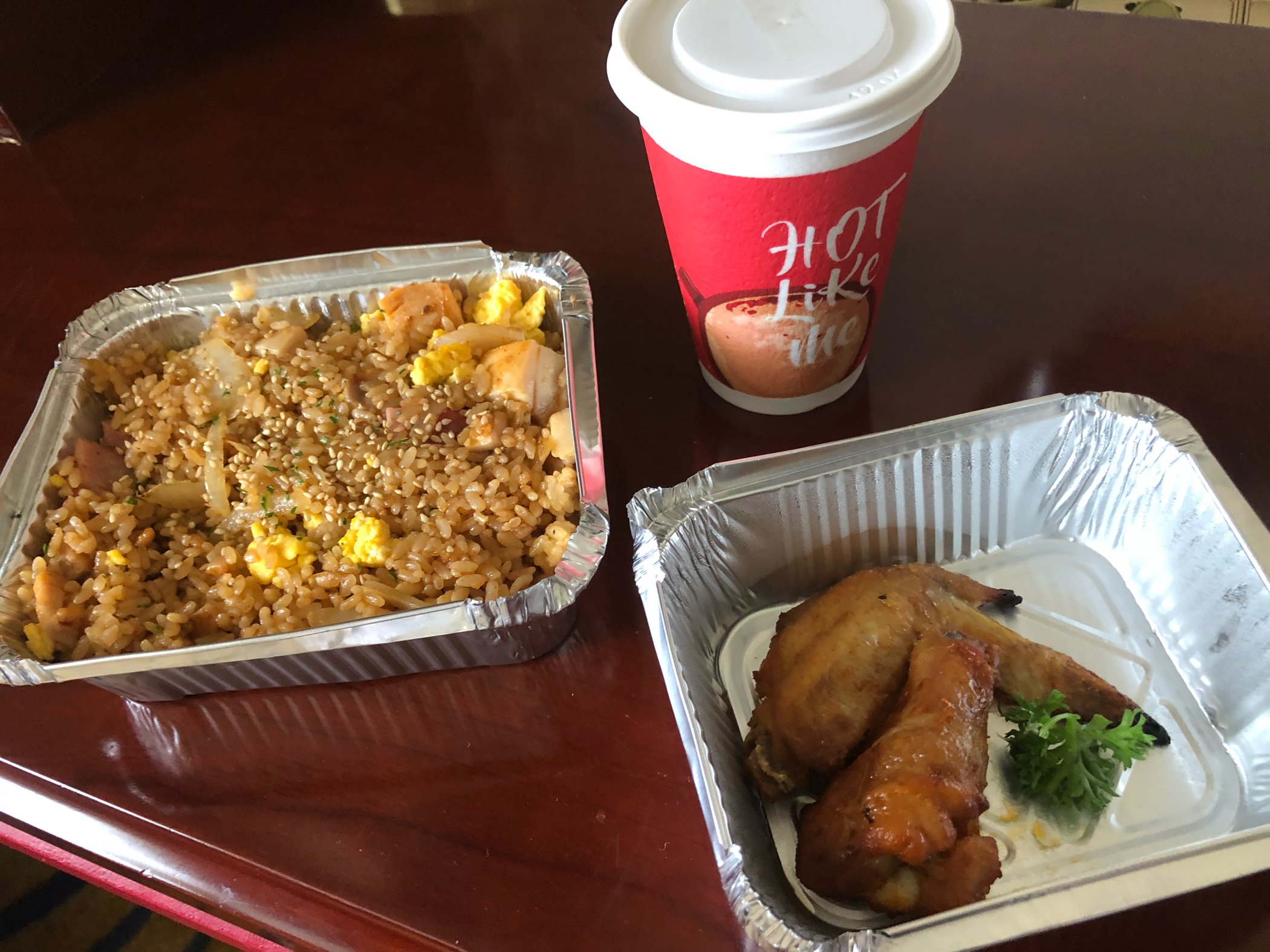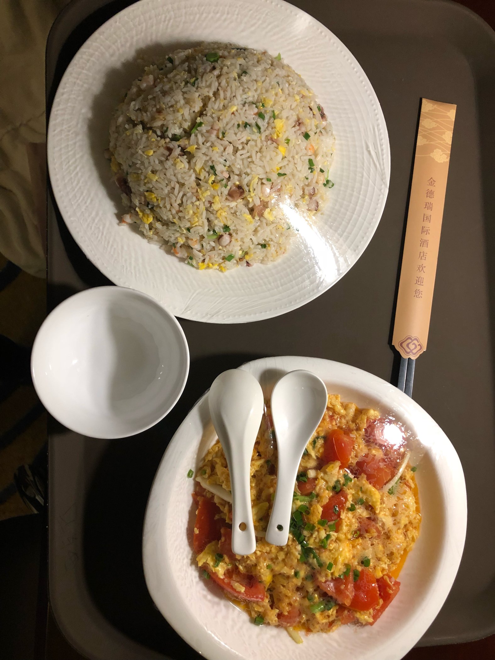 晚餐,就在酒店送餐服务,味道一般,炒饭太难吃了,番茄炒蛋居然放蒜粒。诡异。。。