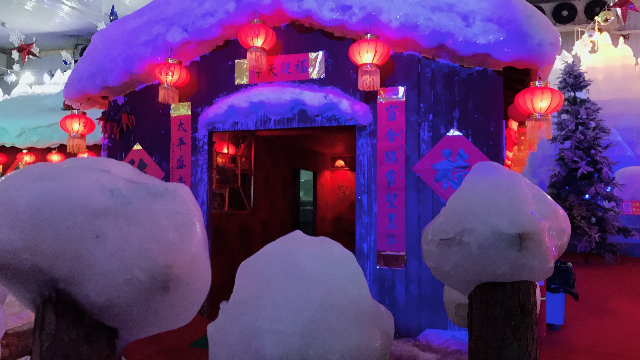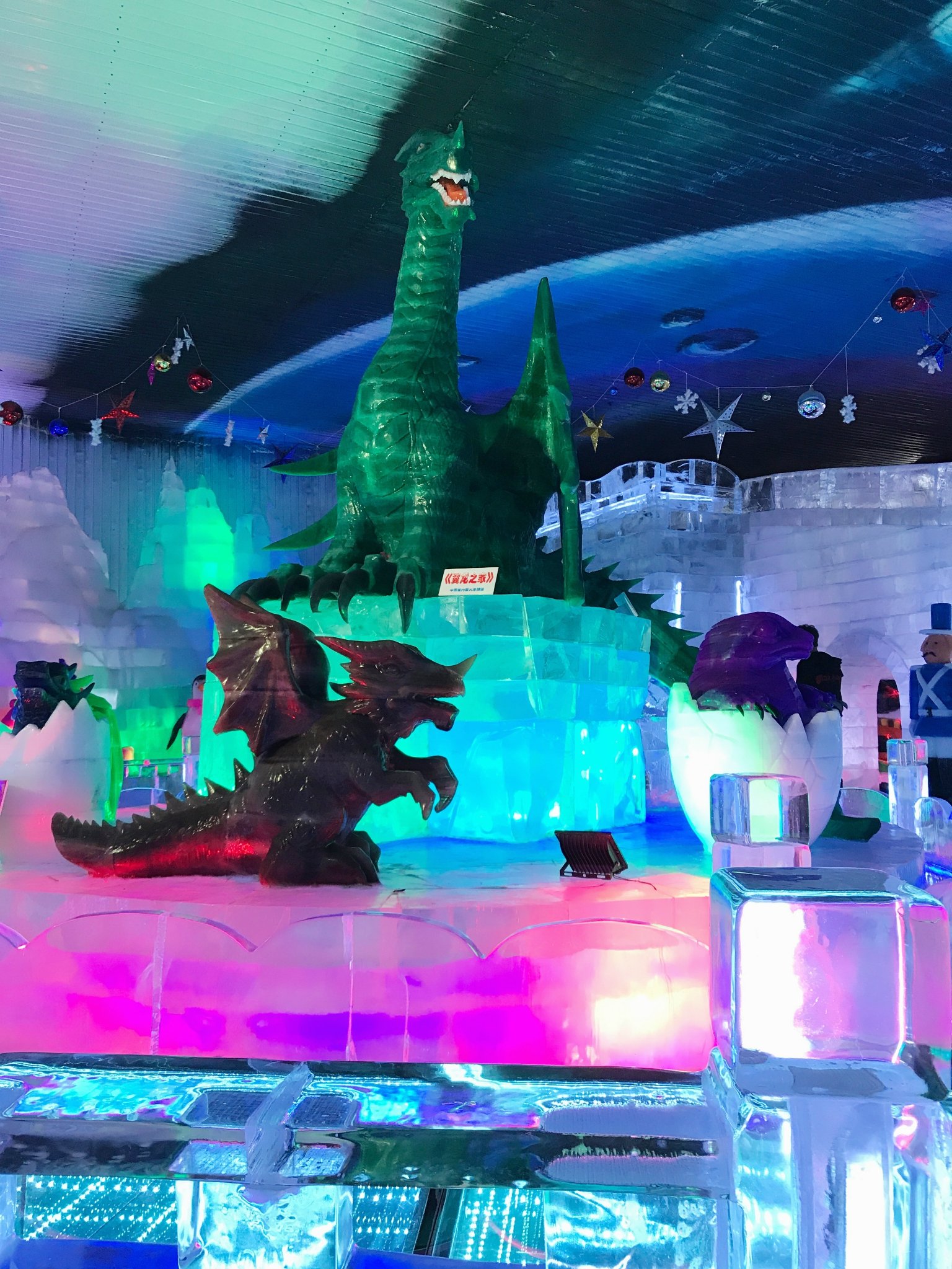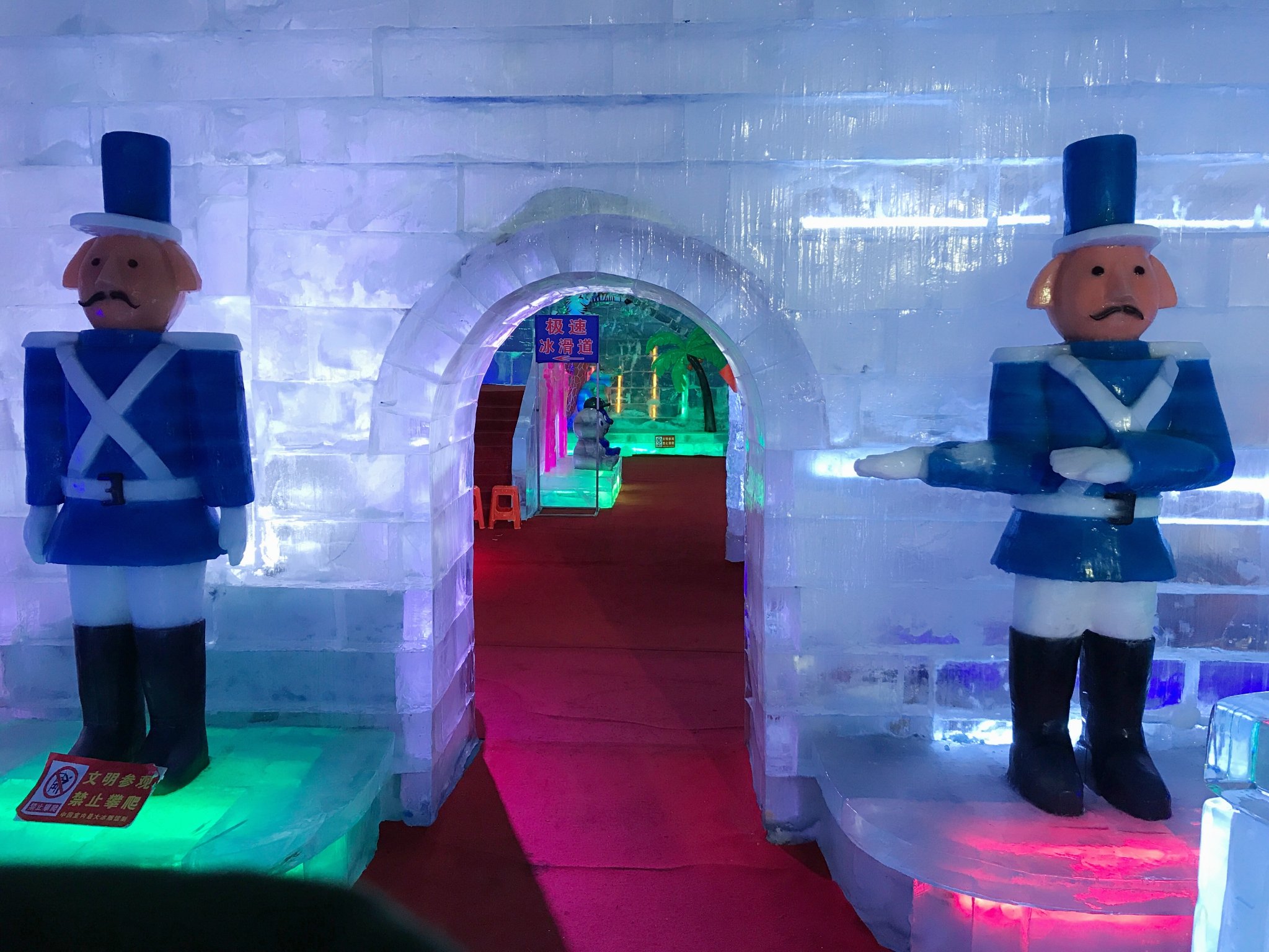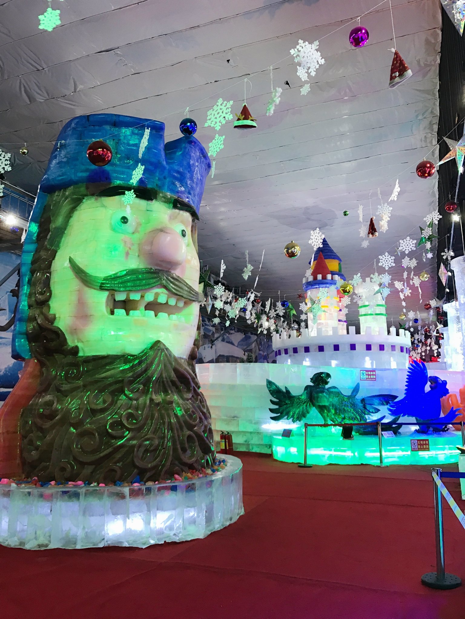这是广府古城不远处的冰雕展,里面真的超级冷,即使穿了东北大棉袄(租的),手还是冻死,赶紧拍几张照就溜出去了。