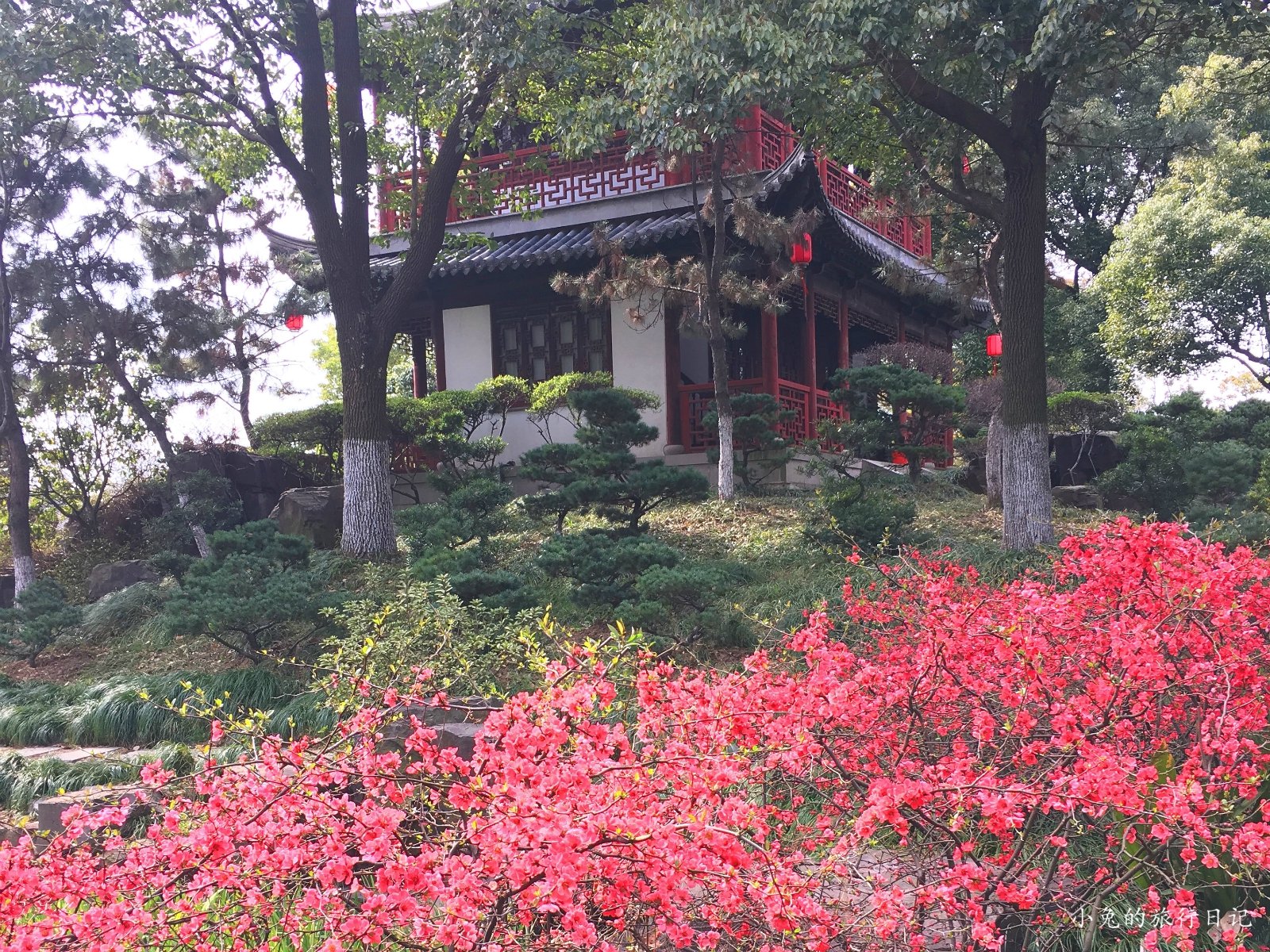 满园春色关不住,鲜艳的山茶花给园林带来生机。