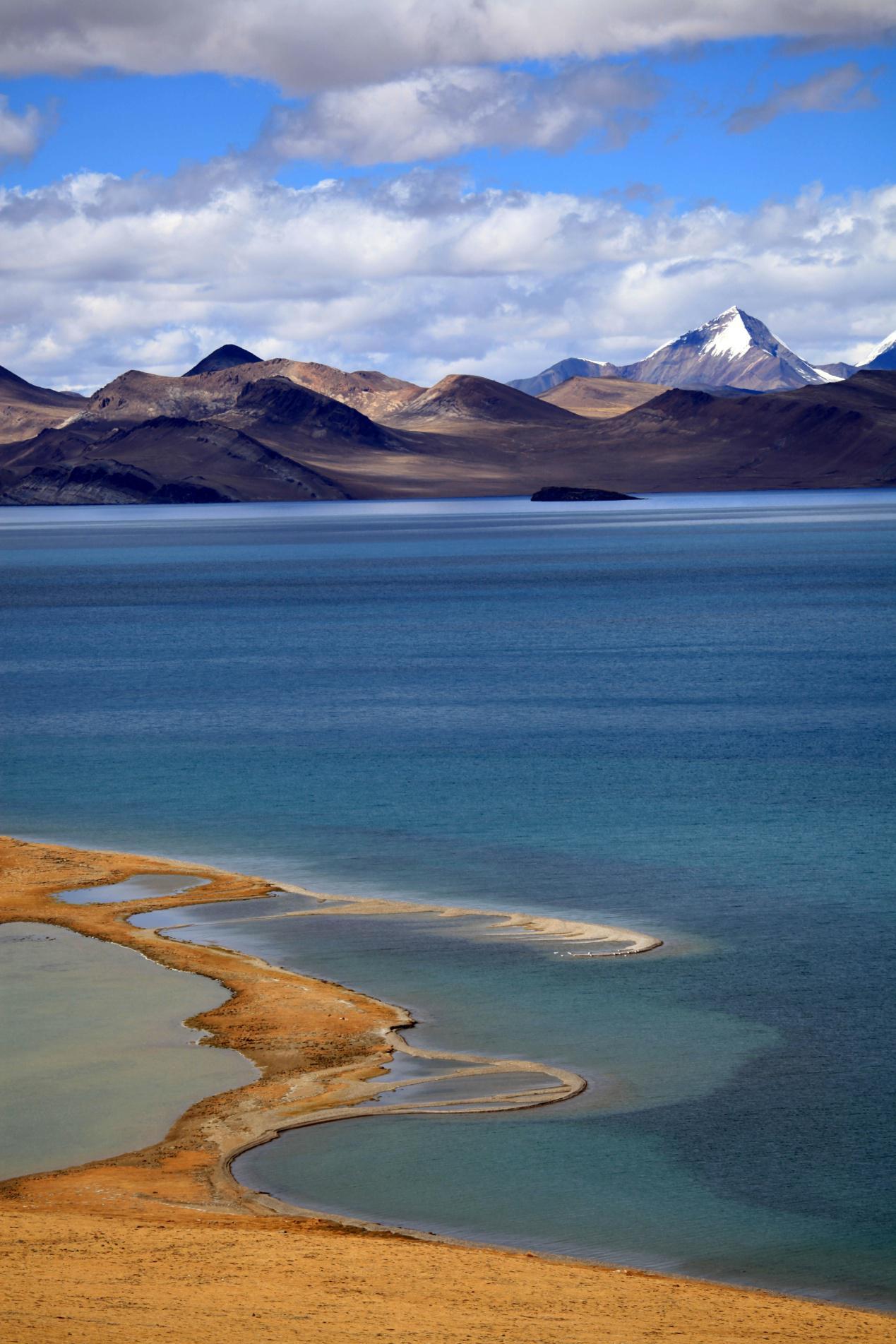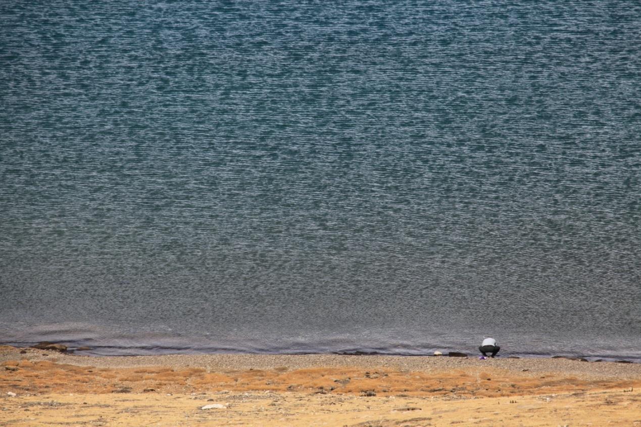 (这个湖很漂亮,色彩丰富,辽阔浩瀚,水天一色)
