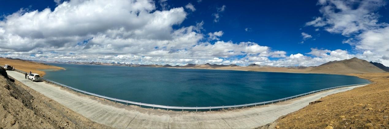 (普莫雍错有一边都是公路,这张全景可以形象地看到)