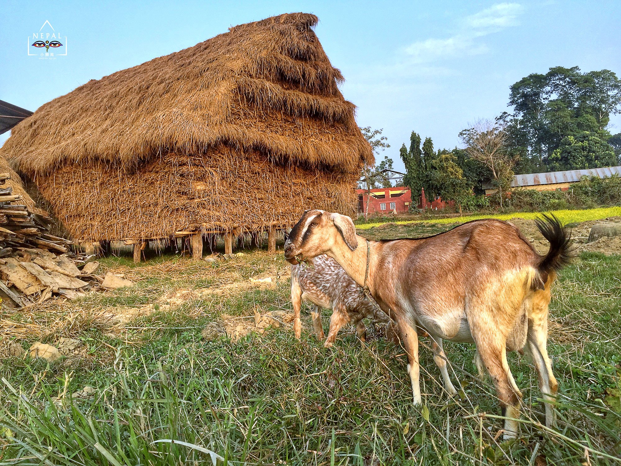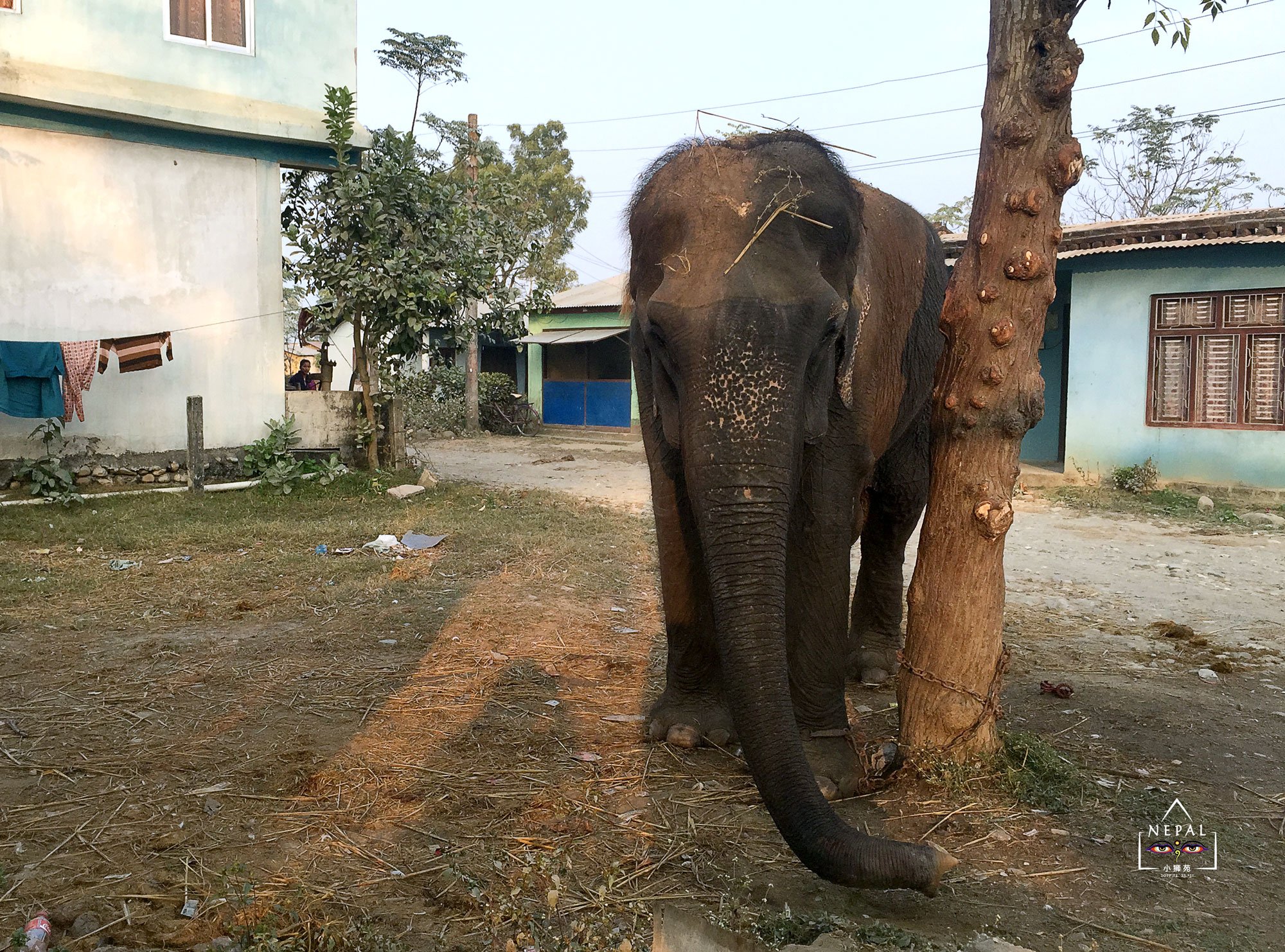 当我这个自小长在城市的菇凉,正指着眼前的鸭子、火鸡、小羊激动不已时,猛一回头,竟看到离我不到10米的树下,站着一头大象!天啊,这村里的自然生态要不要太好!这么随意就见到大象了!?大象见人也不紧张,放松地甩着它的长鼻子。