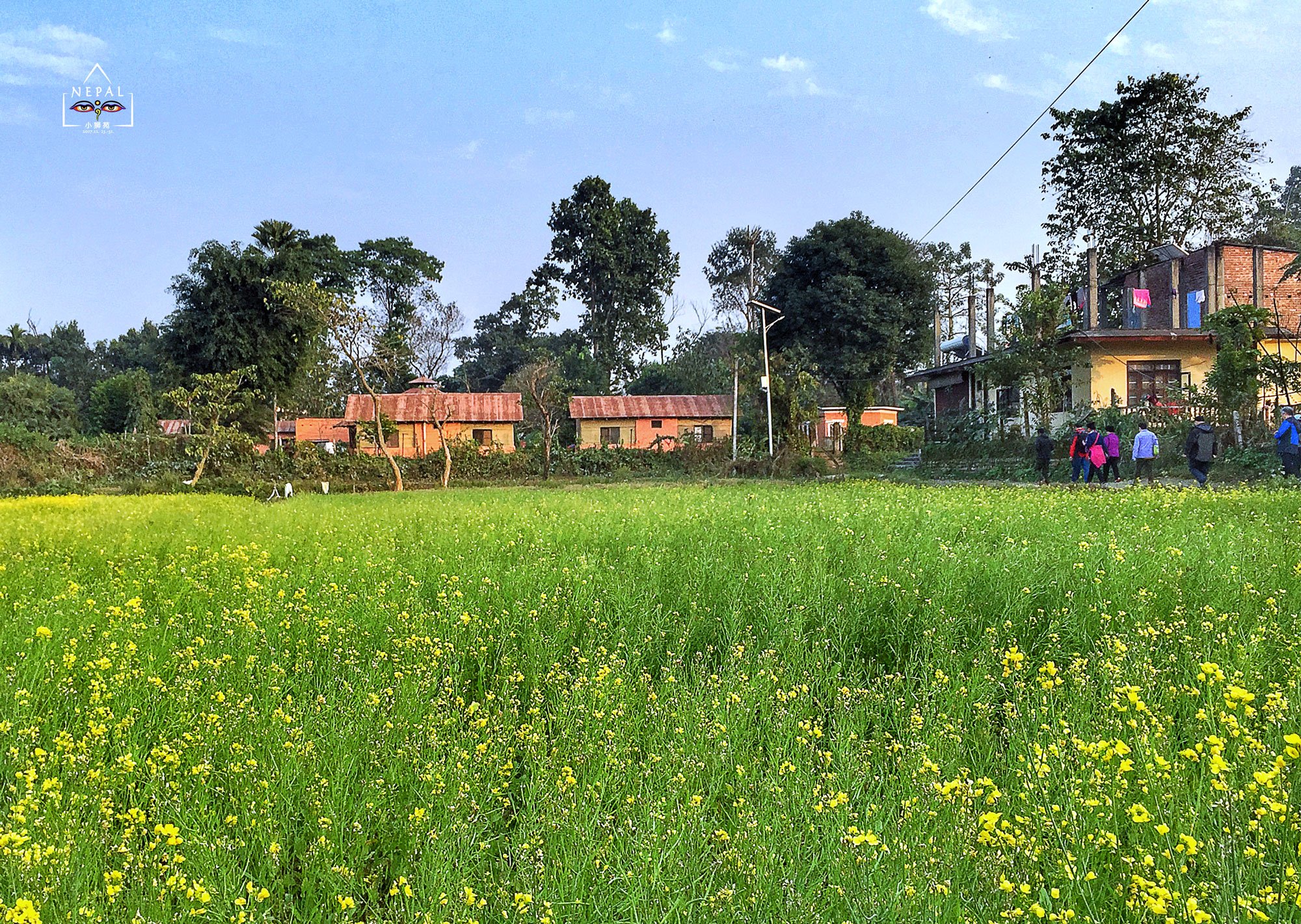 走出酒店,就看到一片花开得正好的油菜花田,四周鸡鸣狗吠,一片自然田园风。