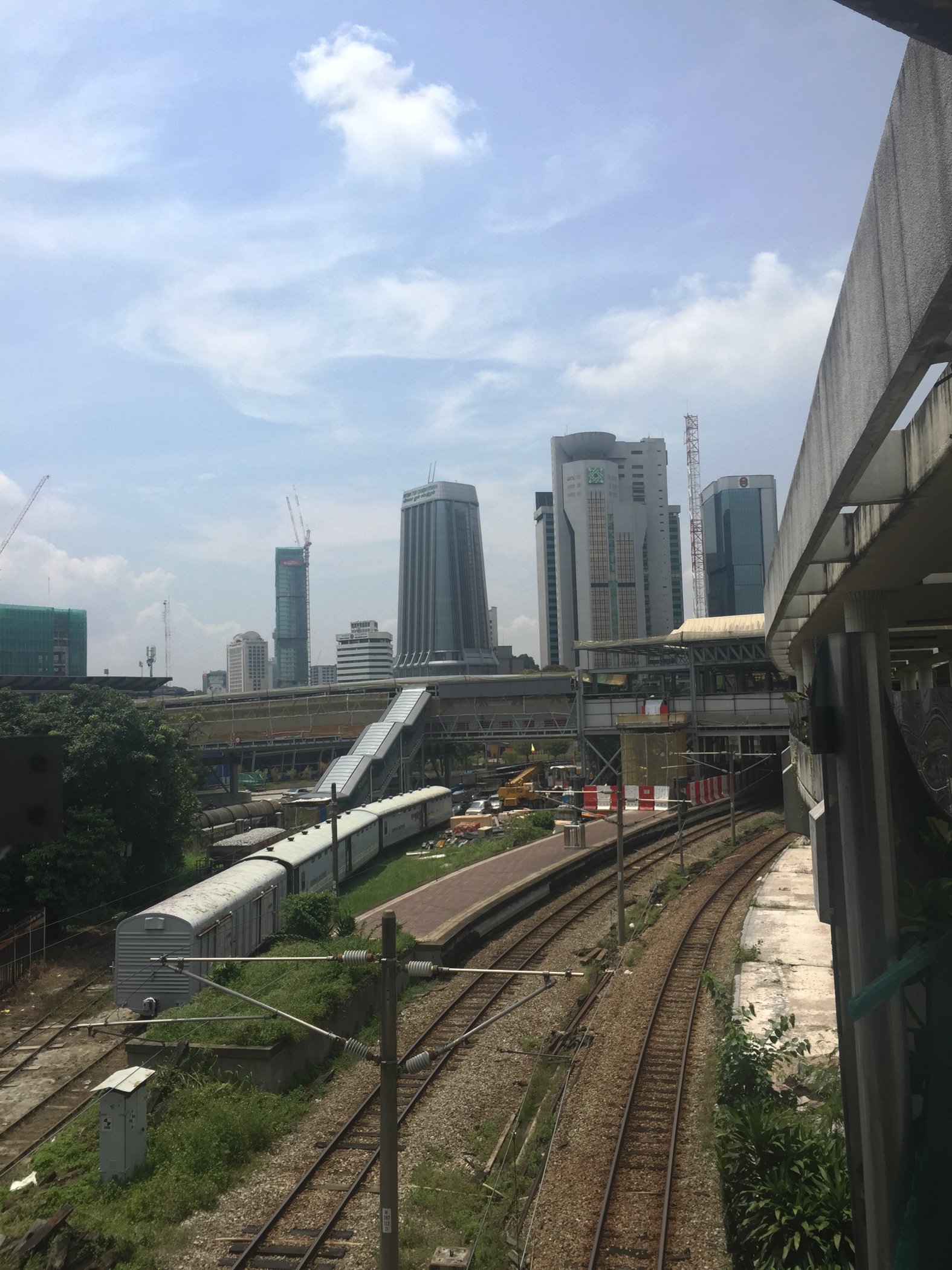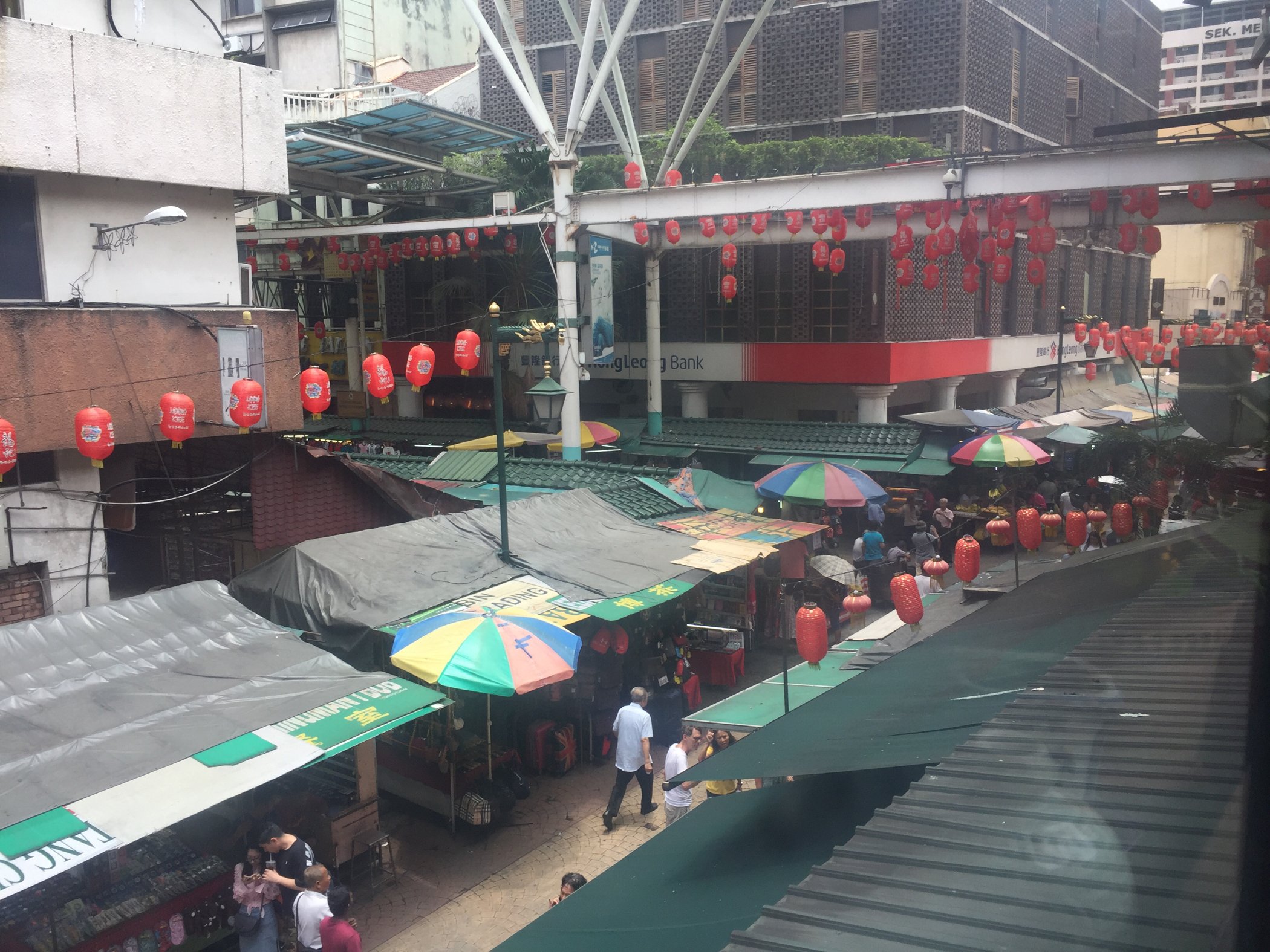 我们本来打算打车过去唐人街,在地图上看了一下,也就1公里左右,可是司机就地起价,竟然要20MR。我们果断放弃。毅然决定步行过去。从旧火车站出发,走过第一图的小路,然后经过一座天气,途中还能经过中心市场,类似于赶集的地方。从天桥第二个出口出去,指示牌上会写着MARKET。中途还能看到旧火车站。这是在天桥上面,我们当时在认路,结果那位朋友很热情的过来问我们需不需要帮忙!马来西亚人真的很棒!经常我们在看地图的时候就有人会过来问我们需不需要帮忙,保安师傅也是这样,而且还是用英语,感觉他们又热情又洋气!