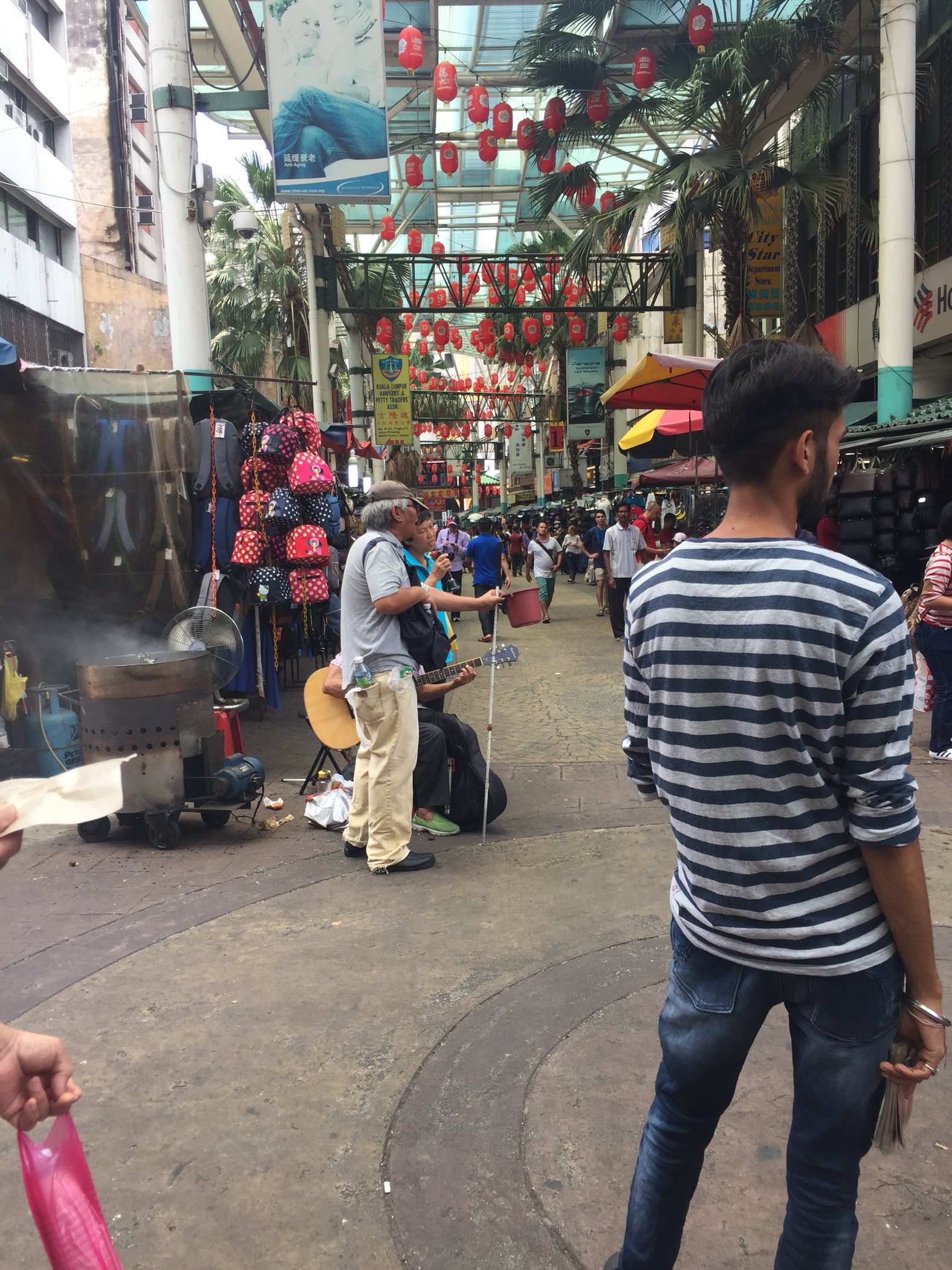 一群老者,在街边唱歌卖艺,唱的是爱拼才会赢。在异国他乡很亲切。估计在下南洋浪潮中来到这个地方的华侨更是浓浓的乡音。