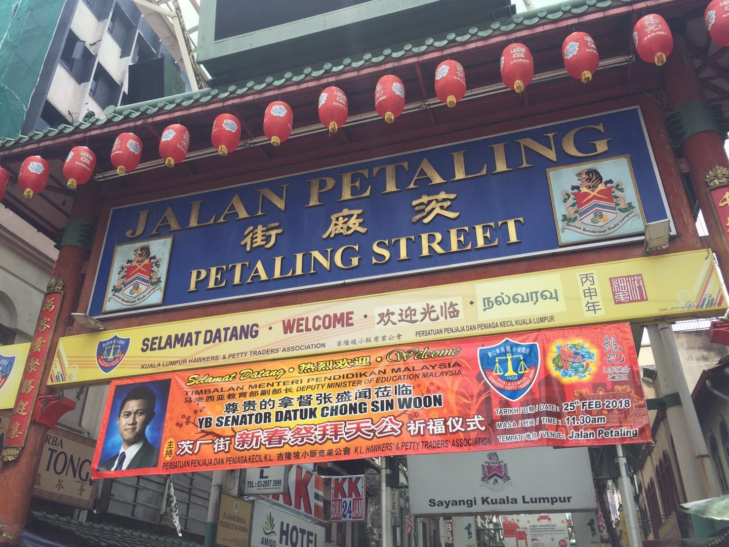 按照指示的提示,朝着一栋较高白色建筑走,很快就能走到。不过最先看到的并不是唐人街的这个门,而是GOKL中转盏。所以在唐人街交通也很方便。