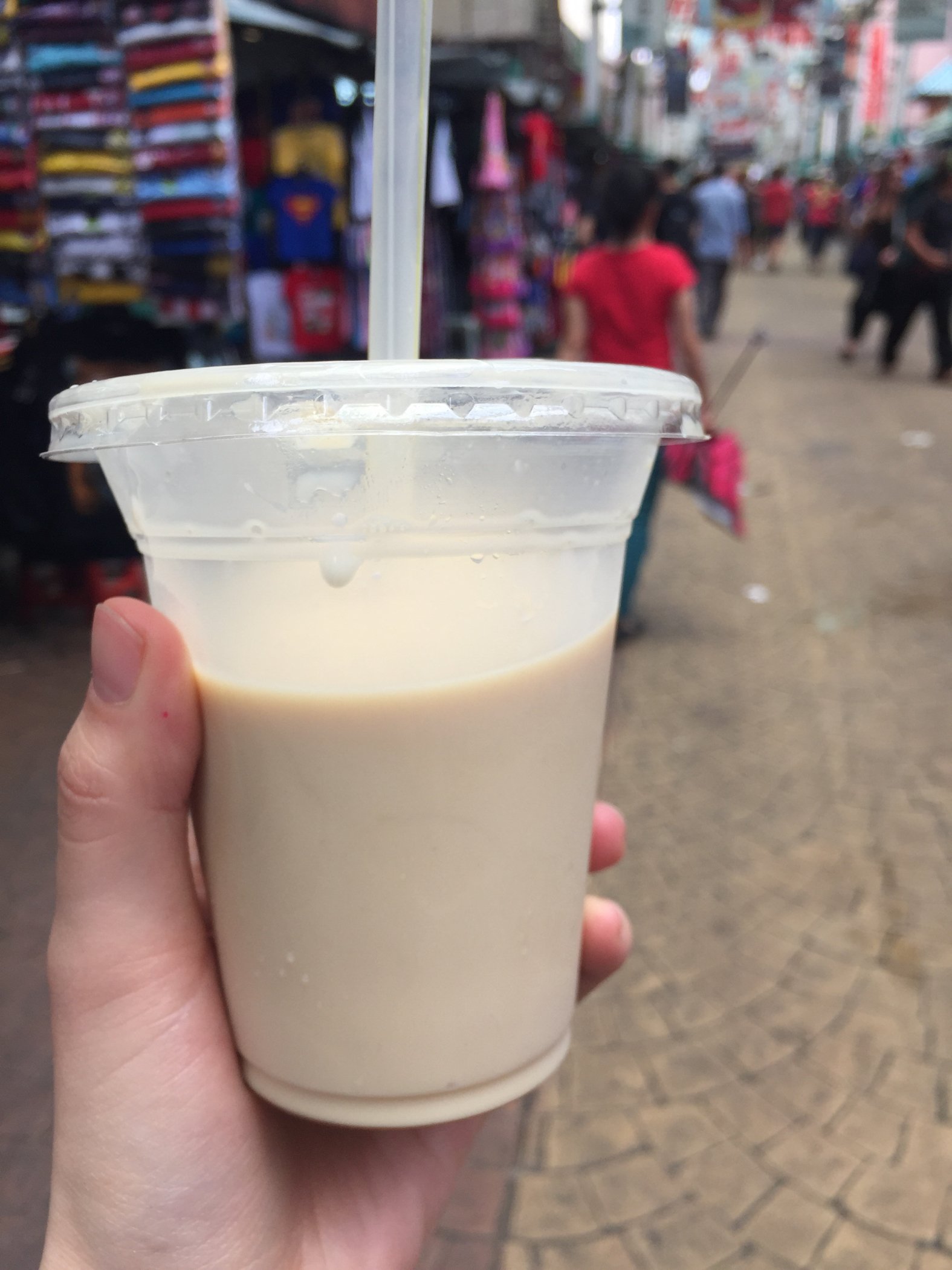 冰的是豆浆水,热的是豆腐脑。可以加红糖。我们买了一小杯豆浆水,小时候维维豆奶的味道,还是很好喝很解渴的。我发现马来人特别喜欢买饮料用袋子装,相当于买的大份。这个豆浆也是一样可以选规格的。小杯1.7MR。
