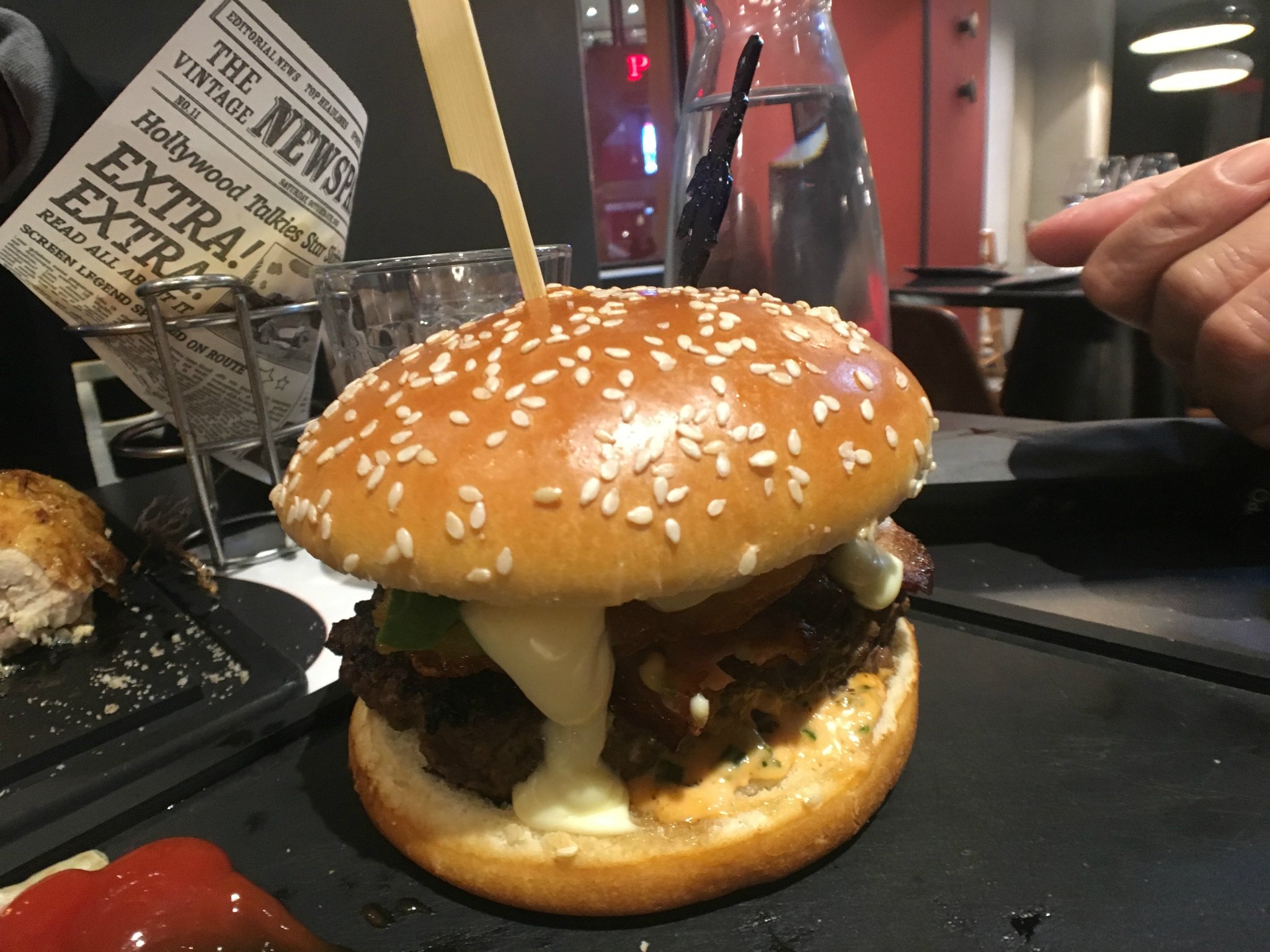 当我们吃完晚饭的时候赶回酒店睡觉了,实在困到不行了。牛肉汉堡还是挺不错滴~刚来到巴黎,生物钟全乱了
