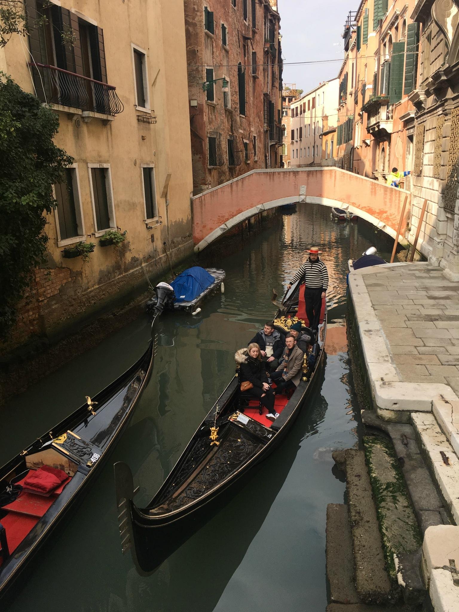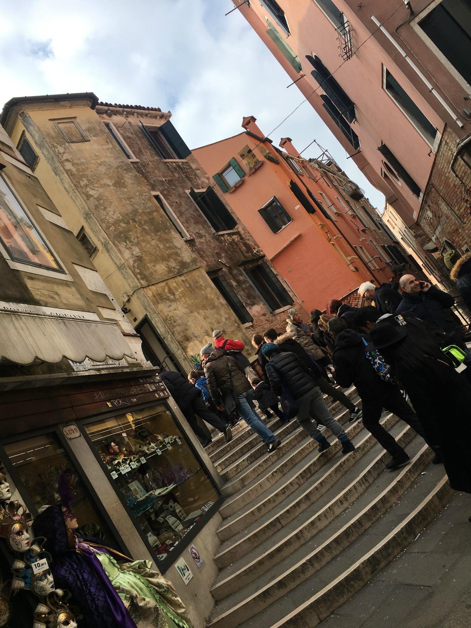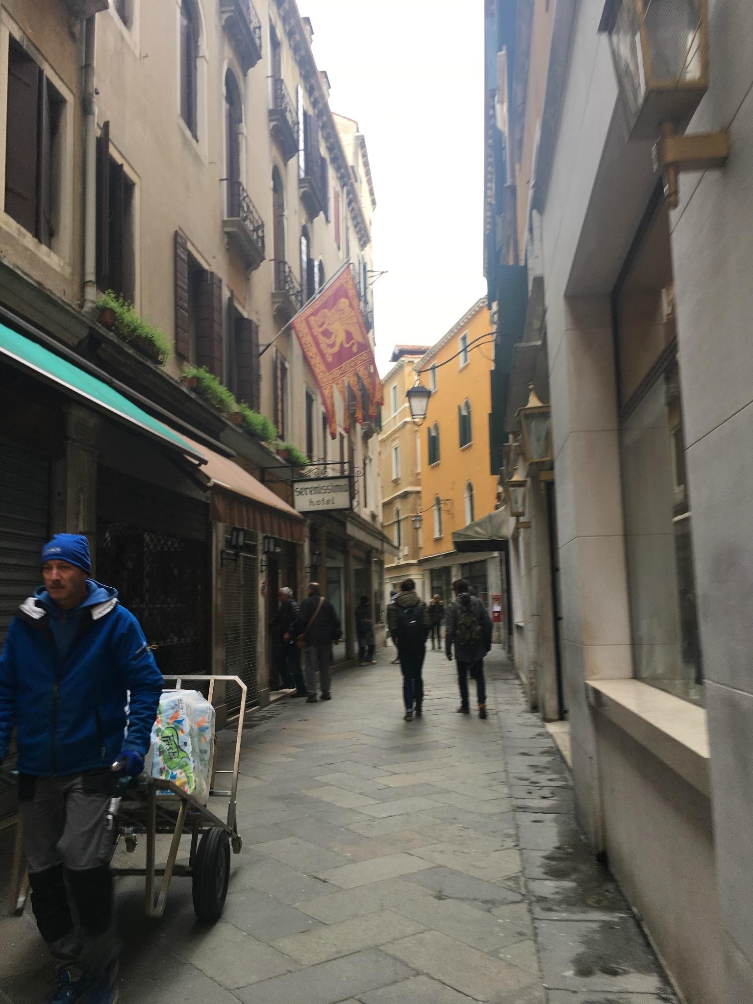因为小巷里面有很多小桥,上上下下确实非常吃力。下船之后需要走过蜿蜒的小巷才能到达酒店。酒店城市税9欧
