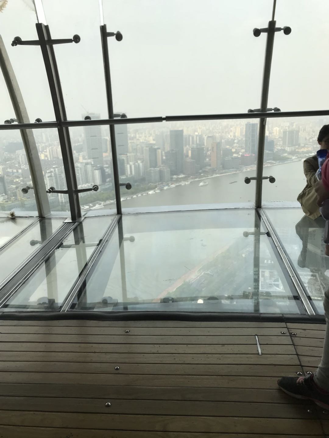 真心排了四个小时,一点都不夸张,不多不少,刚好四小时,我们终于上塔了,等你上到塔上之后,你就后悔了,因为你排了四小时的队,只不过上在高处看看黄浦江的全景而已!你排了四个小时,上去只需要五分钟,浏览完毕!然后就是一个透明的玻璃长廊,走在上面,地面是透明的,有恐高的人,是不敢上去的,我就是这类人!