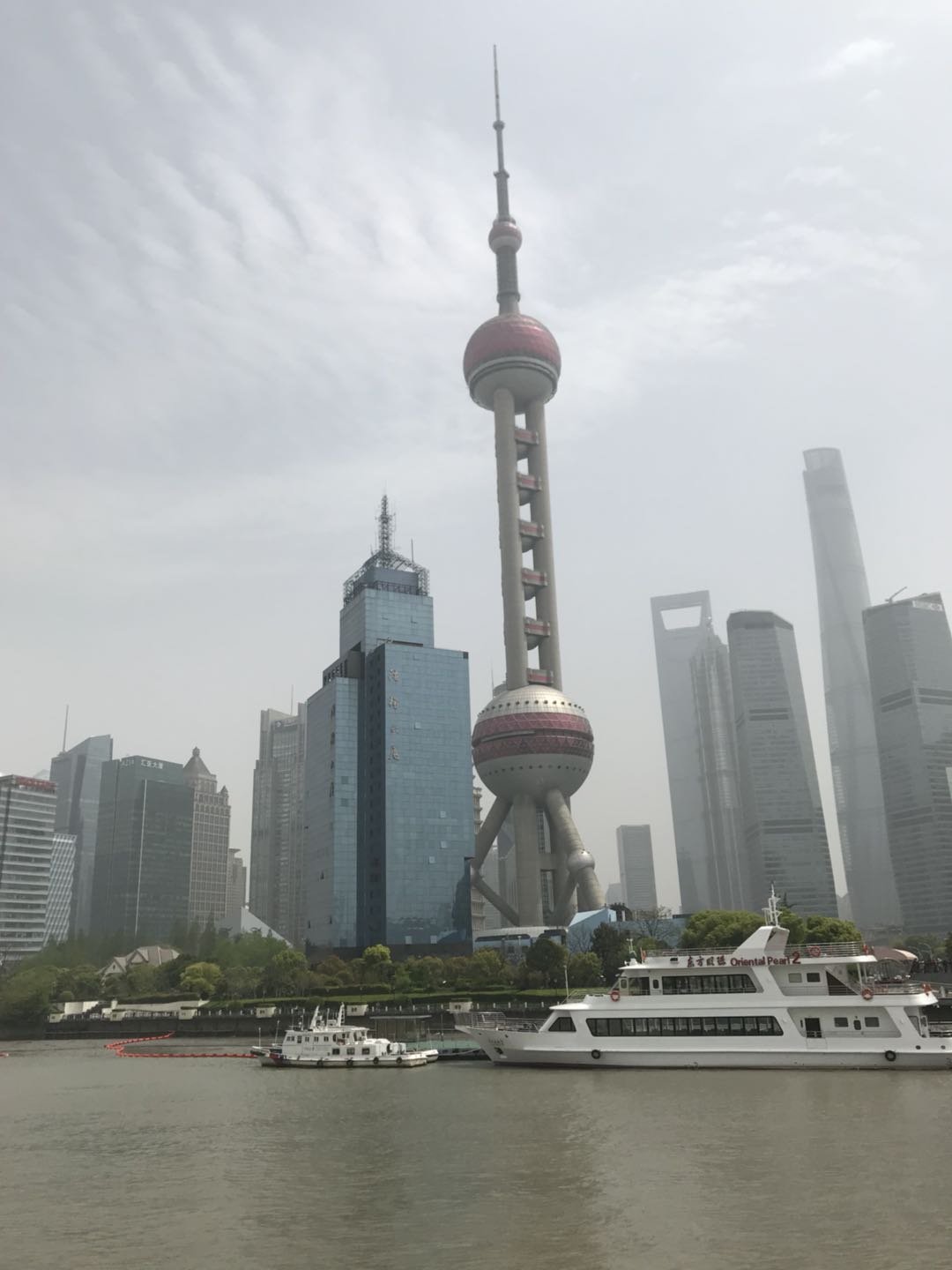 因为之前的滴滴司机告诉了我,美团新开通了打车,比较优惠,我就用美团叫了车,真心优惠啊,我们从陆家嘴到东方明珠打车才用了4元。东方明珠旁边就有一个海洋馆,6号这天门口也是排的人山人海的,我们就放弃了,直接去了东方明珠,有三个方向都有门,买票是在正门口,票分三种,一种可以上到塔顶,价格比较贵,一种是上到塔中间,还有一种就是光参观一下塔底的博物馆。票最好是在美团上订购,美团上还是相比较现场便宜很多的。我们买的是套票,先坐船游览黄浦江,再排队上塔中,套票价格为两大一小650。现场买的票,价格比较贵。我们先去黄浦江游船。观光了一下黄浦江的美景,其实夜景应该比较好看,白天没那么好看。