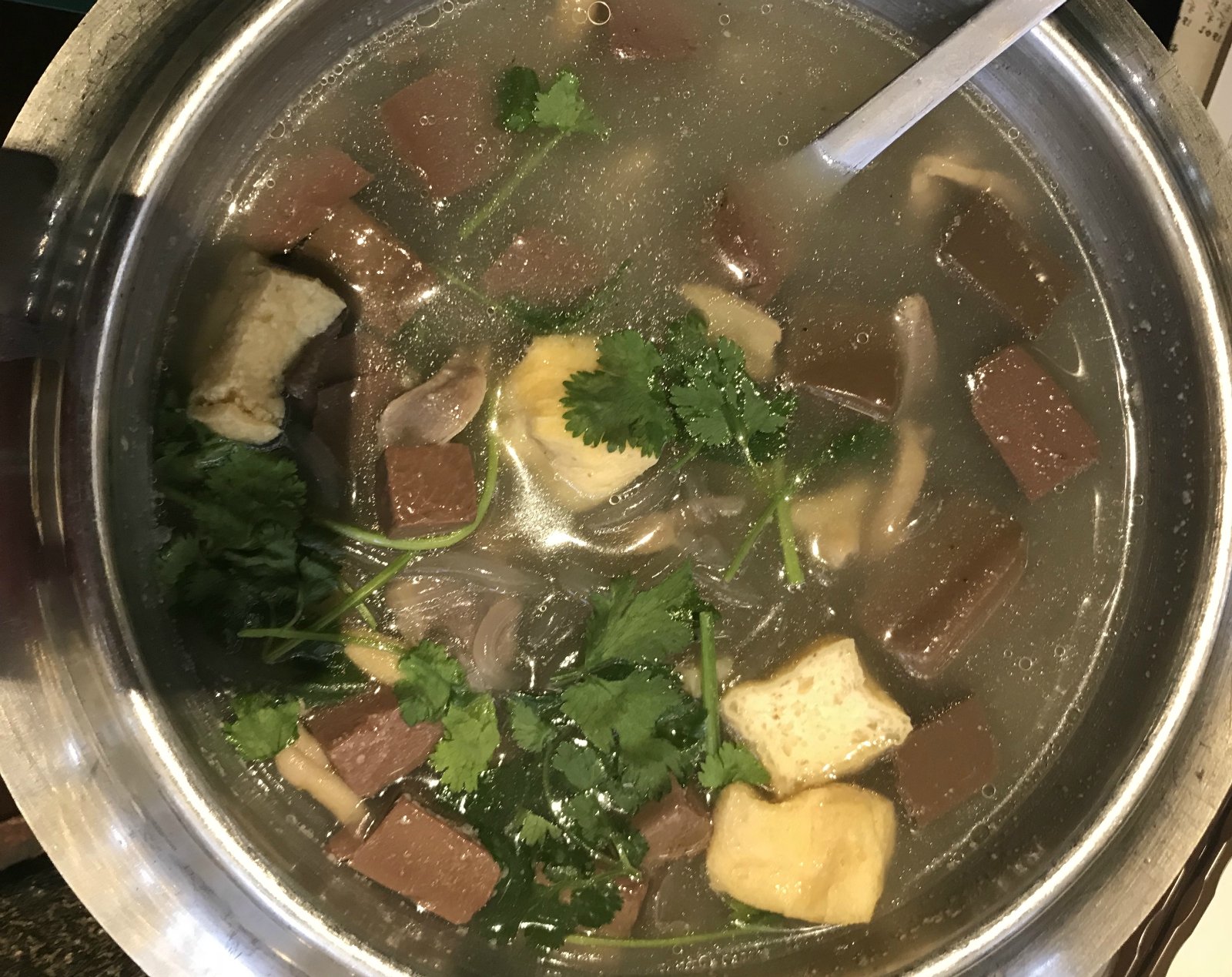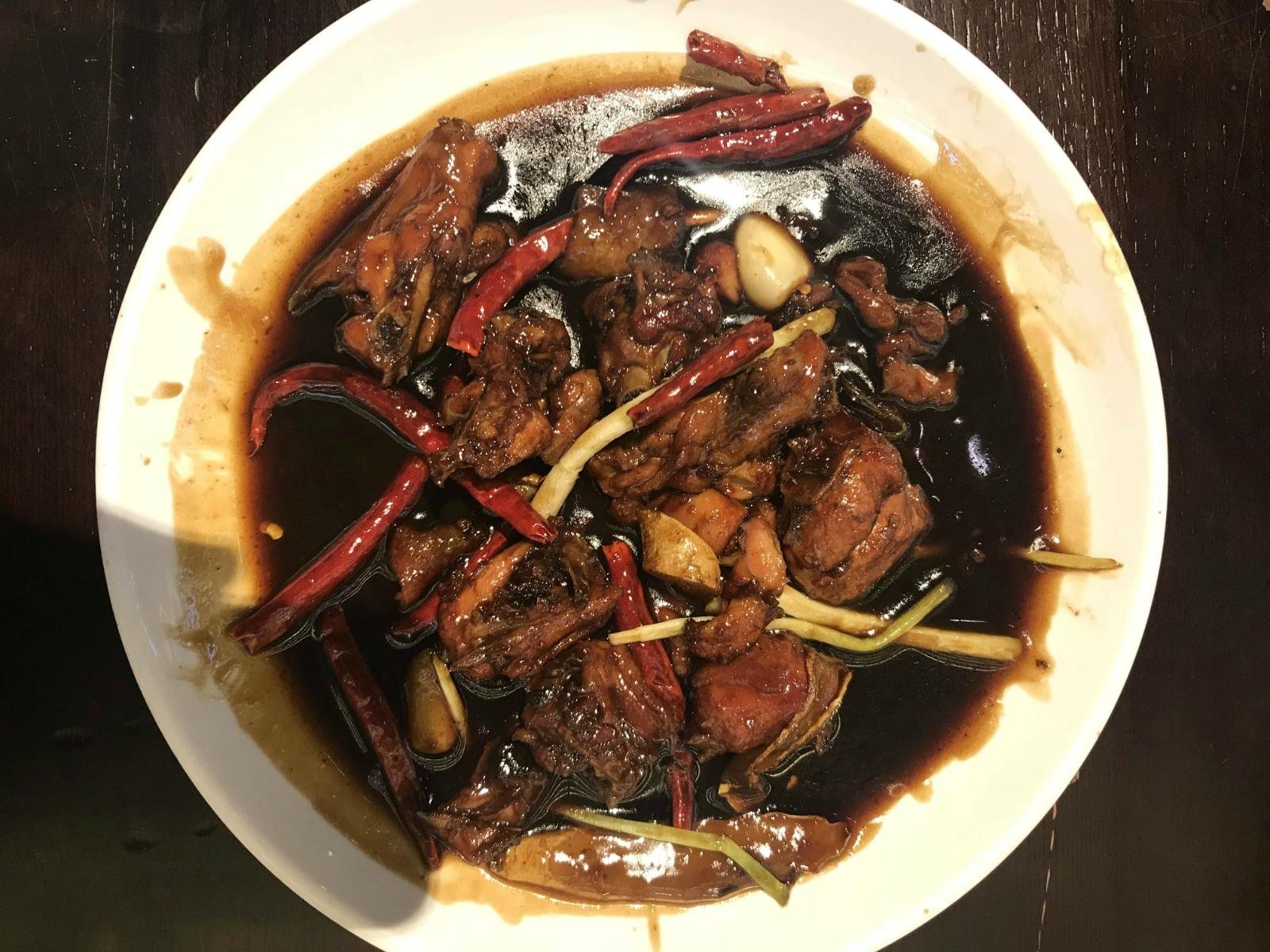 绿茶餐厅点菜可以在菜单上画圈,也有在线点菜,可能是适合食客爆满时候。因午餐刚开餐,服务员亲自到桌子记录的。我们点了古法醋烧鸡,东坡肉,葱姜鲈鱼,鸡汤豆腐,豌豆泥,鸭血汤,绿茶饼,馄饨,糍粑等,人均七十多元。