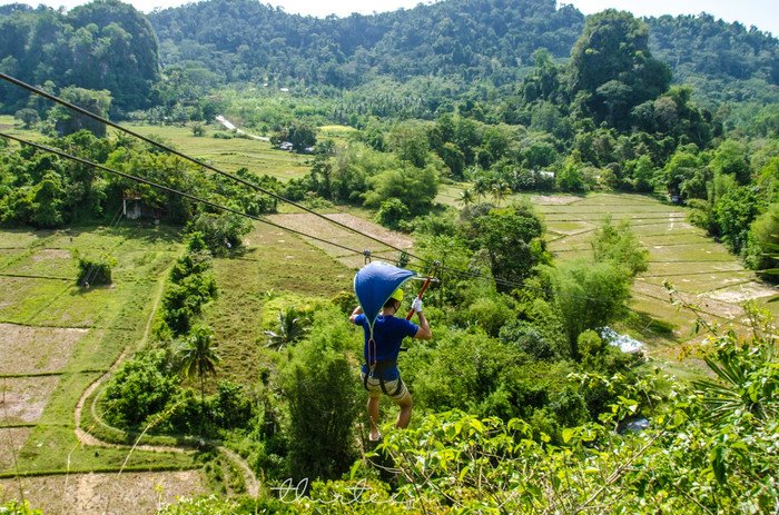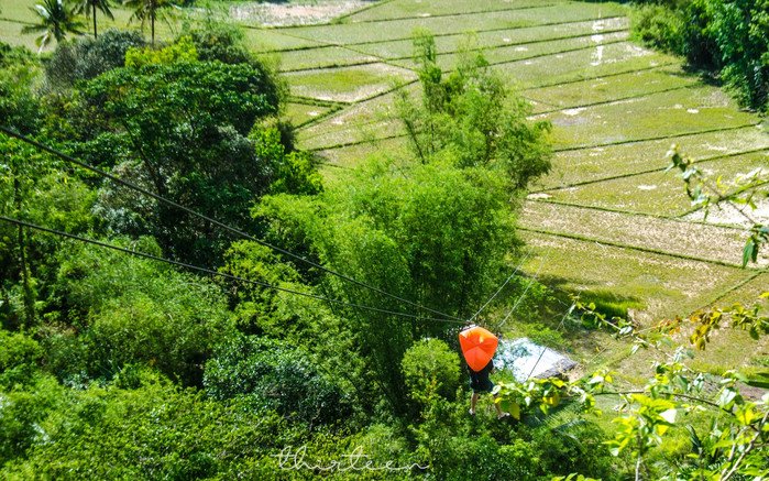 在这里有两种滑索可以选择,一种就普通的,还有一种就是超人的那种。所以我果断选择了最普通的那种,坐着。别笑我,我这个老人家心脏不好,年纪大了。