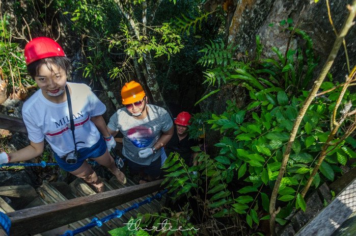 进入乌攻石的游客都会被分成10人左右的小团队,由一个向导带领,洞内怪石嶙峋,有时候窄的地方只容一人通过,稍微胖一点就可能被卡住蹭到,这是个对胖人充满嘲讽的景点,我们的向导是个上了年纪的妇女,但是身手矫健甚至比我们都灵活。她指引我们敲击山体岩壁,果然咚咚有回声,声似“ugong”。还和我们说,在千百万年前,我们所处的岩洞,其实是海底的某个角落,后来经地壳变化才演变成了如今的乌攻石。和地下河一样这都大自然的馈赠。