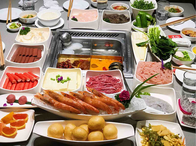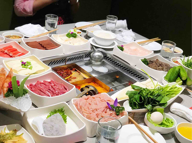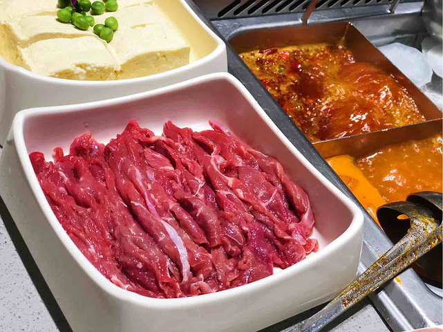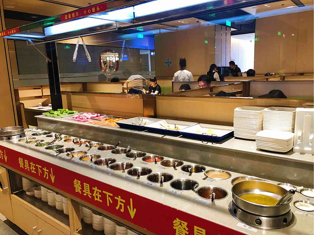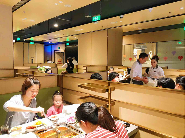 又是抖音带火的一家餐厅。还是忍不住去尝试了下。就在118广场里,楼下会有迎宾,很容易找到。 工作日晚上没有想象中的那么多人,还有空位。 把网红吃法需要的菜品几乎全都点了,人均吃到140左右,性价比还不错。 抖音海鲜粥,阿根廷红虾不新鲜,煮的过程中就在不断的撇掉浮末,煮好的海鲜粥很腥气。 抖音网红面筋虾滑,这个请服务员来弄的,将鸡蛋打散,至金黄色后与虾滑一起塞入油面筋中,感觉上像是在吃创新款丸子,口感还不错。 抖音番茄牛肉末饭,番茄锅不加汤,煮到浓稠时,加五香牛肉粒淋在饭上。 鸭血很嫩滑,配辣锅更美味。 抖音豪华豆花牛肉夹心,豆腐里塞入番茄牛肉饭、豆花酱和五香牛肉粒,嗯,这搭配有点特别。。 抖音自制酱料,五香牛肉粒、香葱、芹菜碎、蒜泥、芝麻、辣椒油、香菜、蚝油、酱油,混合起来的口感有咸有甜。还是更喜欢简单的辣锅用蒜泥麻油配香菜或干碟;海鲜蔬菜配海鲜汁加芹菜粒。 说完抖音款再来说普通的。笋片还是不错的,很大一片,辣锅里多煮一会儿更入味。 毛肚和黄喉都不能久煮,七上八下差不多就可以吃了。 牛肉粒肥嫩可口,牛肉卷就比较普通了。 鹅肠很脆,但不够新鲜。 免费水果里火龙果很甜。 这大概是我来过的服务最普通的海底捞了,就是完全没什么服务。唯一要夸奖电梯口的迎宾小哥哥,特别的热情。