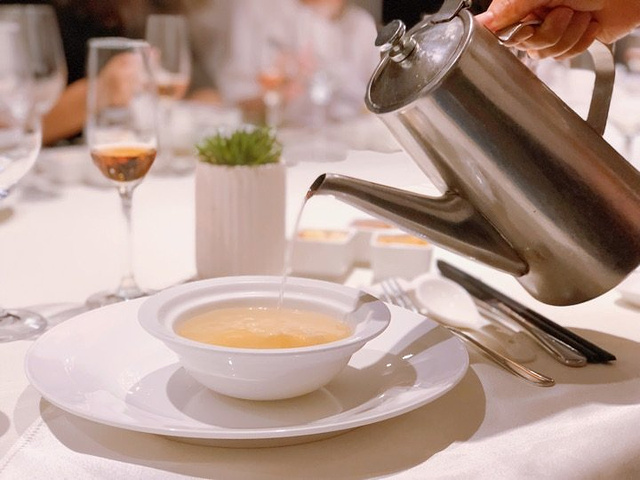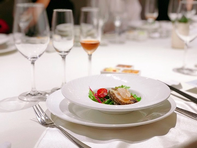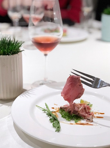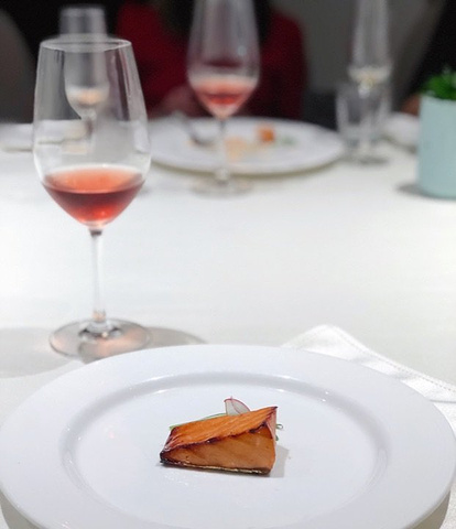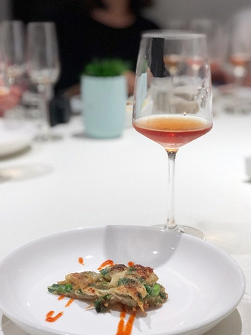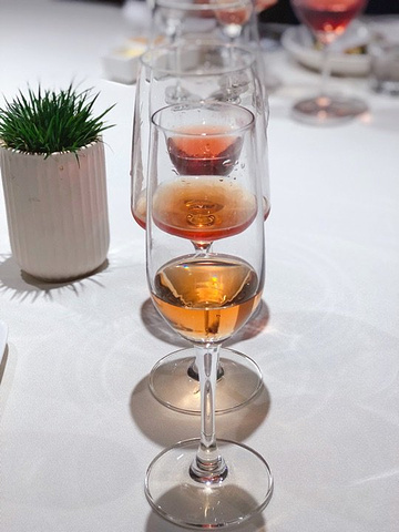 一半的成熟+一半的青春,在黑珍珠一钻餐厅——黑明赴一场粉红色的约会。90后新品桃红葡萄酒酒会🥂享受美酒与美食的完美邂逅。 果醋沙拉鲍鱼,果醋汁比例搭配的正好,不会太甜很清爽,鲍鱼处理的很干净,对半切开入口方便。 慢熏烤三文鱼腩,三文鱼的狂热爱好者表示这个食材怎么做都好吃,经过烤炙之后鱼肉渗出油脂,鱼皮Q弹,入口就是满满的胶原蛋白。 鸡汤汆贵妃蚌,蚌肉洗净用鸡汤汆熟,原汁原味鲜美脆甜的口感让人惊艳。 低温慢烤牛肉,沒有华丽的摆盘和鲜美酱汁的搭配,只需清爽的芝麻菜和新鲜的小青桔就使得整道菜锦上添花。 酸汤龙胆鱼,酸汤浓郁鱼肉细嫩粉条有嚼劲,一道绝佳的开胃菜。 干煎竹虫鸡,外皮焦香内里汁水充沛,姜丝的加入使鸡的香味挥发的淋漓尽致,吃完之后有点意犹未尽。 果香浓郁的桃红色液体让人无法抗拒,美酒配美食这个真的可以有。