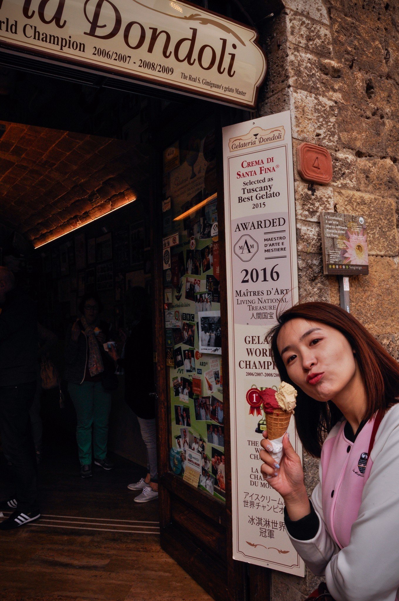这个 全世界第一的gelato!可以看多语言的这个牌子。我不太记得味道了 应该是比较特别的 嘻嘻 有许多爷爷也在给奶奶买~我跟老公去旅行真的没有非去不可的地方,其实前主教堂应该进去看一看的,据说也就精美绝伦的壁画,毕竟小城在10世纪就已经有历史记载了,但我们目前已经去过好多大大小小的教堂了,就没有进去。我们还是更喜欢随处发现铭记在记忆中的细节,比如路遇的一直猫,比如城墙上的白雪公主和七个小矮人。