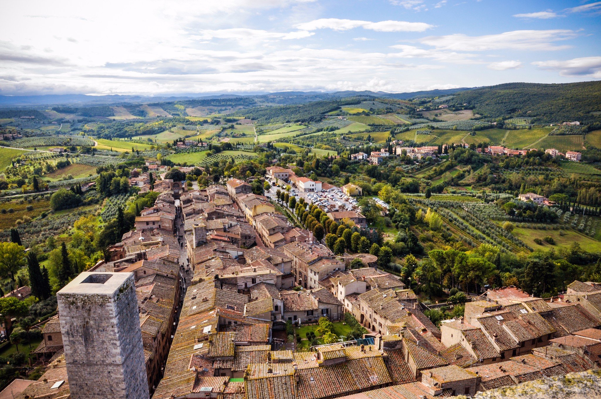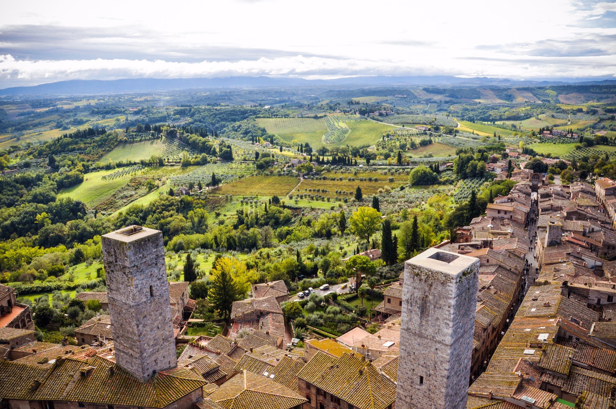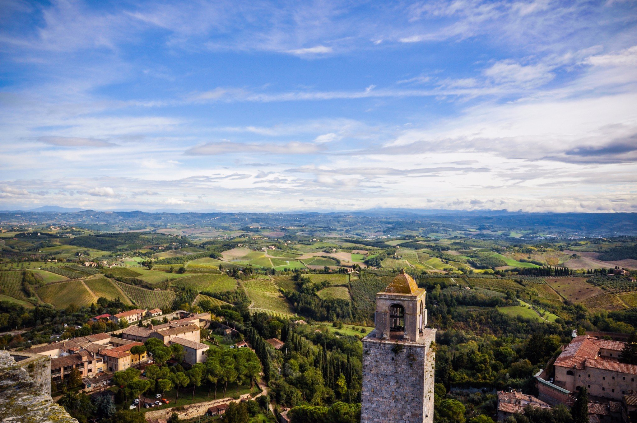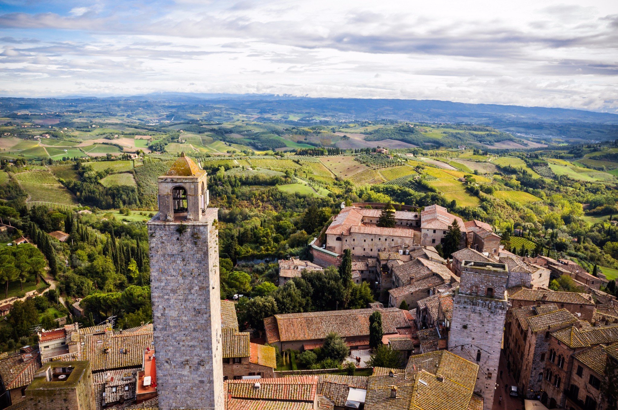 站在格罗萨塔楼上,整个圣吉米尼亚诺全景一览无余,此时天上云也散开了,阳光洒满小城。