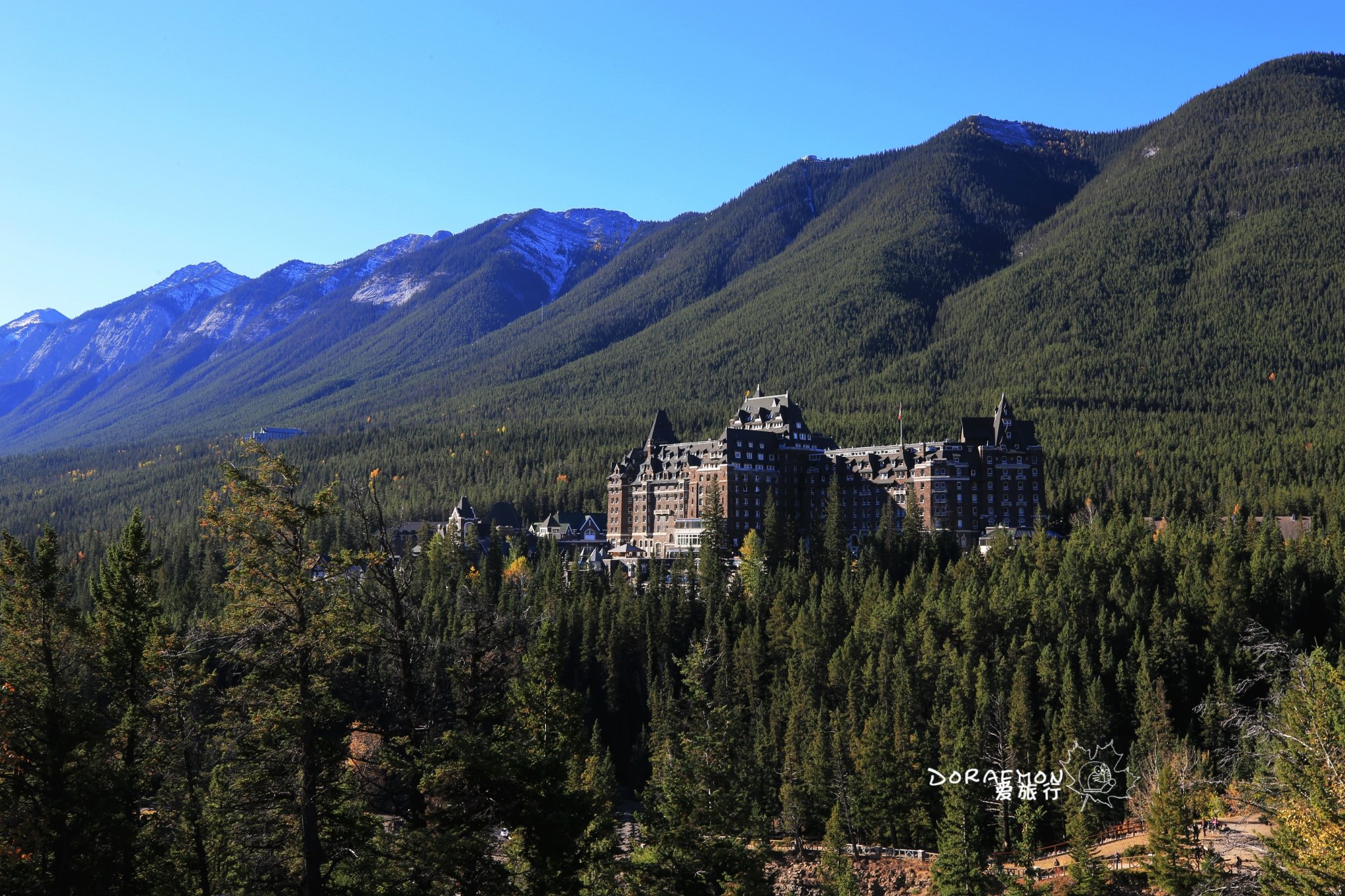 从游客中心旁边的路(Woof Street)步行到隧道山(Tunnel Mountain),沿着步道可登上1690米山顶观景台。下山后,沿着Tunnel MTN DR公路,经过The Banff Centre走到弓河拐弯处就是惊奇角(surprise corner),可以遥望到对岸的费尔蒙班夫温泉城堡酒店(Fairmont Banff Spring Hotel)和硫磺山,俯视弓河瀑布(bow falls)。