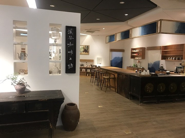 溪谷咖啡坊重新装修后区域分隔更合理了,老式钱柜组成的吧台凸显着年代感,其宽大的体积因为前厅的超大面积倒不会显得厚重臃肿。 整体环境有点像中国茶舍,茶文化的感觉和咖啡文化结合的很好。墙上的诗句很有看头,建议细细品读。 进入其中,会被烘豆机工作过程中散发的咖啡香味所吸引。闻了一下新出锅的瑰夏,芬芳之气让人迷醉,放几天后一定味道更美。 #耶加雪菲# 略带酸味的柔和口感蛮适合黑咖啡入门者,层次感貌似也比装修之前有了进步,更加接近在岱宗街咖啡铺喝的味道了; #哥斯达黎加# 喝的红酒处理法的,虽不如我最爱的葡萄干蜜处理让我心动,但依然不是为一杯醇厚果香的好咖啡; #芝士蛋糕# 相比一般店铺的蛋糕,这是得放了几倍的用量,这才叫芝士蛋糕!美好不用复述,强烈推荐的甜品; 如果你在西城OR南城,这里会是一个喝咖啡的好去处。 位置就在济南大学创业学院最深处,停车位充足,内部空间超大。