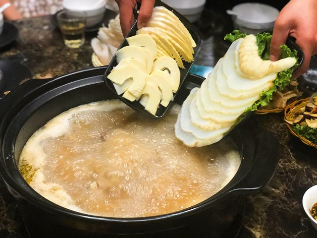 2018年头水菌get! 夏天又来了,云南人最爱的野生菌季又到了!作为野生菌的忠实粉丝,吃菌这种事情必须前赴后继! 头水见手青最近售价600-800一公斤,但在“菌海森林”新鲜的见手青依旧不会因为菌子贵而涨价! 用老鹅煮一锅鲜美的野生菌,再来一份新鲜天麻和甜笋,谈笑间二十分钟过去,浓香鲜甜的一锅野生菌煮好了。这种时候不需要任何蘸料,本味就是最好的,喝一勺汤感觉把整个属于野生菌的夏天都喝到了身体里…