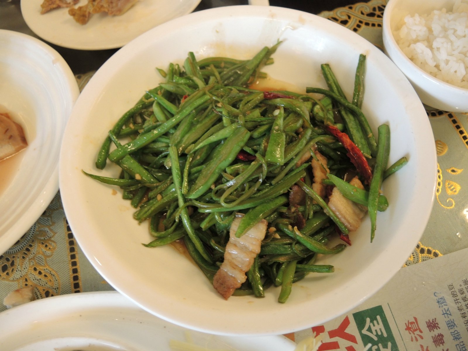 肉片炒四季豆,很家常,下饭的青菜,要是五花肉片能换成江南的腊肉片儿,可能会更美味。