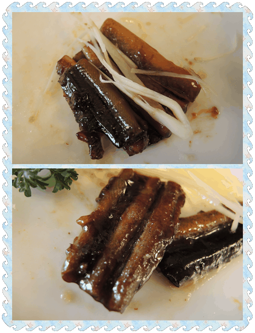 瞧瞧,这一片片儿的,光彩诱人的那股劲头,够馋人的吧?夹一筷子入口,细嫩鲜美,唇齿留香呀。新聚丰的响油鳝糊和蓬莱阁酒楼的不相上下,都很美味。