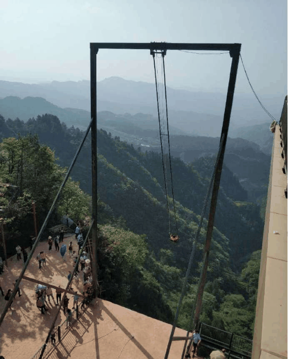 排了很久的队,终于轮到我了,18米悬崖秋千长度很长,摆动起来,幅度非常大!我在秋千上疯狂大叫,感觉天旋地转,感觉整条命都在安全装置上!一直激情“摇摆”,荡到我“灵魂出窍”,眼泪都流出来了!