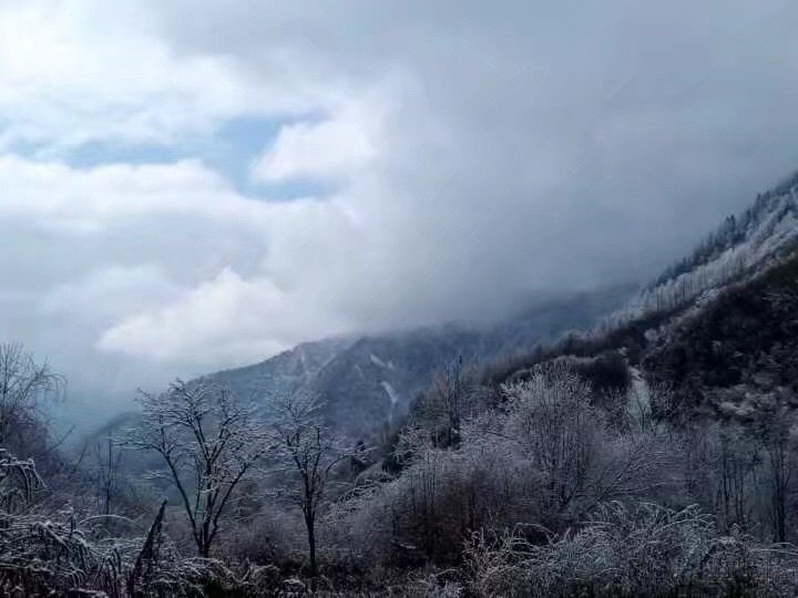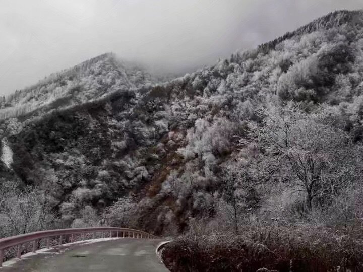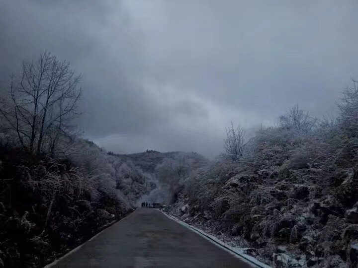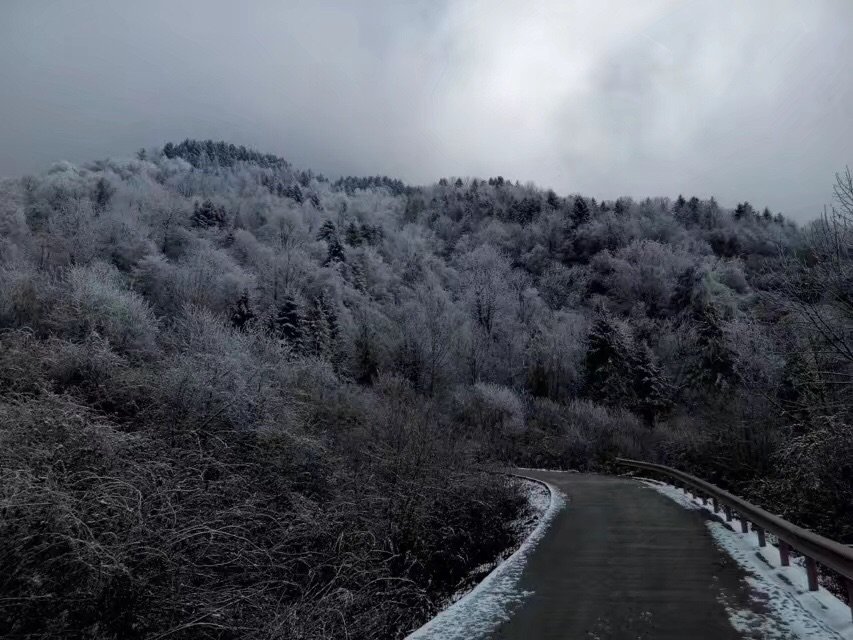 这是我第一次看到雾凇诶,近看就是一层冰覆盖在树干上,远看就真的是银装素裹的感觉!