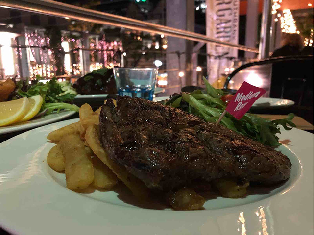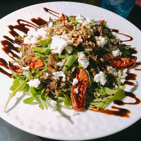 服务周到,即时是在露天的二楼吃吃喝喝也有暖灯打着,让我和朋友一起吃了好久好久,还点了酒,菜的分量见图吧,真的十足,很爽很好吃。惊艳的是环境,温度,和菜的搭配,口感细腻饱满,酱也不腻人,配菜中和了肉的厚重,会觉得肉和清新的配菜在咀嚼的时候很有层次。写着写着,我又饿了。值得去,记得要点酒哦~哦,哦,他们菜单可以扫码成中文,很方便!