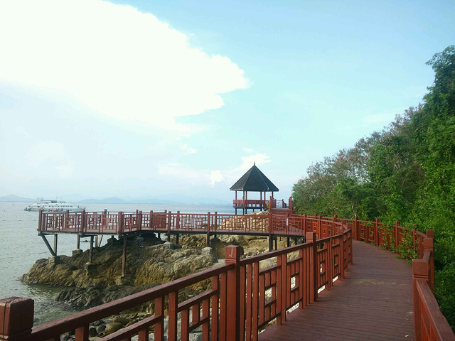 同行的大佬跟我说“我带你去中国的马尔代夫见识见识”!抱着怀疑的心态,我跟着大佬踏上了蜈支洲岛。 交通 美兰机场坐动车到达三亚火车站,乘坐33路到301医院下车,步行约5分钟到301医院公交站台,换乘28路、海棠1号线、海棠3号线到底下车,即可到达蜈支洲岛景区大门! 景区大门附近有一个【藤海渔村】,可以选择在村里住宿、吃饭、购物,价格公道实惠。 票务信息 窗口售票180元一张,各大旅行app优惠幅度不同,我们在去哪儿买的150一张。如果你能找到海南户口的居民凭当地身份证帮你买票的话,90左右一张 如果决定上岛游玩,建议一早起床,乘坐第一班游船9点左右到达蜈支洲岛景区,一直玩到晚上18点闭岛离开!或者选择在岛上住一晚,这样可以在岛上欣赏19点以后属于自己的私人沙滩私人海景。 住在岛上的话,我没什么建议,大家自己找攻略! 不住岛上的话,强烈建议大家带两瓶水上岛,岛上矿泉水8元一瓶!其他食物我没关注所以不太清楚,但从水价来看,其他食物价格不会便宜!!! 上岛建议提前一两天看看各大旅行app.,购买一张环岛游电动车票!窗口售价80、128、168元/人。某app115元可购买面值128元的票。三种价位的票分别停靠2个,4个,6个旅行观光景点。个人建议中间档128的环岛车观光就够了。 从你坐上观光车的那一刻起,请保持相机开机状态,沿途海景太美太美,不容错过,因为环境保护,中途不停车,只能在车上拍照,那种痛!!!哎。。。一点都不人性化 总结 土鳖的我没去过马尔代夫,不过蜈支洲岛的海水,真的真的清澈美丽!海水浴场的水一眼看去白色、绿色、浅蓝色、深蓝色,层层叠叠美不胜收!白色的沙滩,层次分明的海水,徐徐的海风,真的美得让我不想坐车周转观光,只想躺在海滩上吹着风听着听着浪闭着眼睛浪费这美好的时光