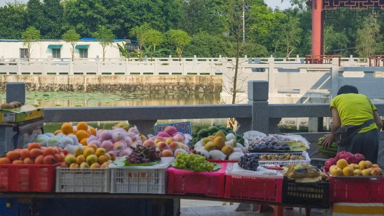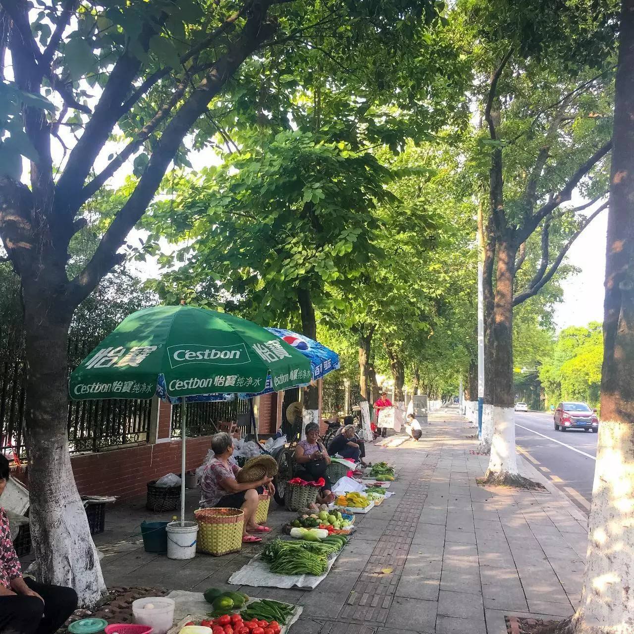 村外边林荫大道,每天都有卖蔬果的阿叔阿婆在这里摆摊,自家种的蔬菜,养活了岛上一代又一代居民。