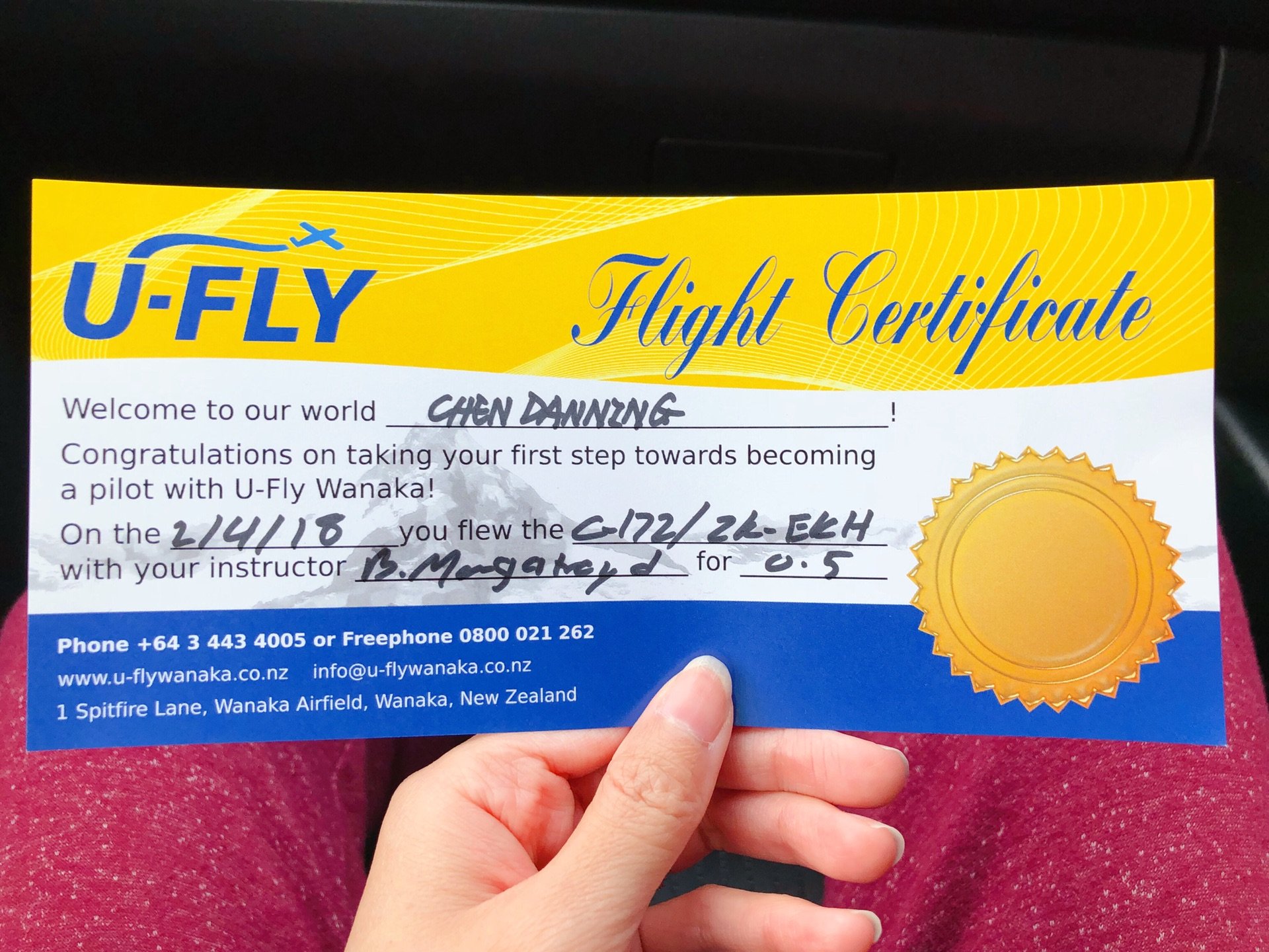 飞机降落后,教练给了我一张初次体验驾驶的证书,哈哈哈