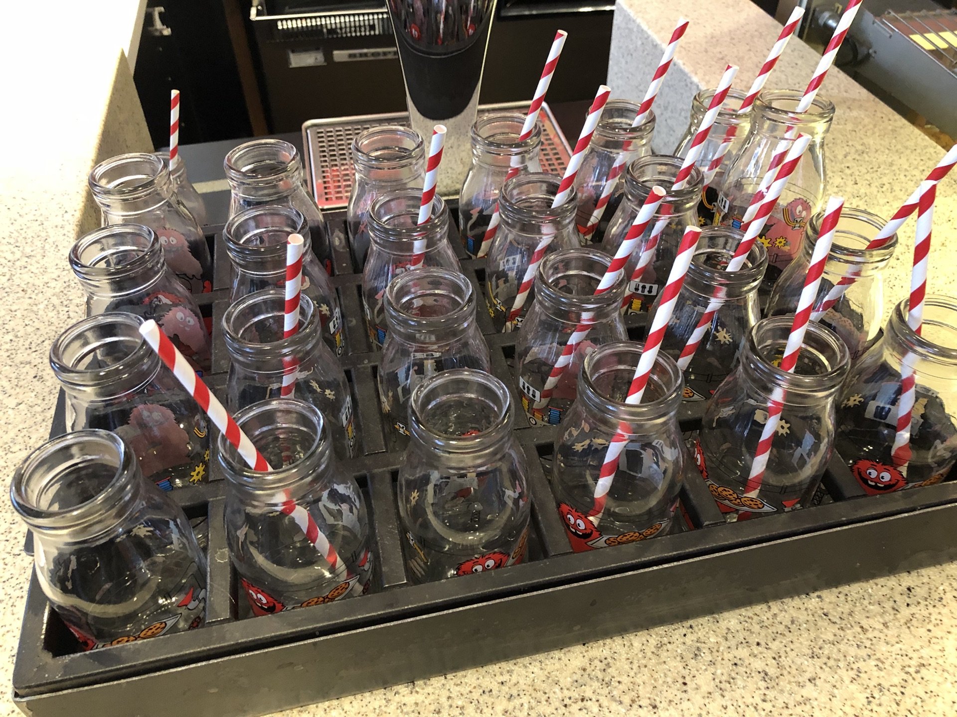 就是这个牛奶,盖子是一块小曲奇,很可爱,瓶子超好看