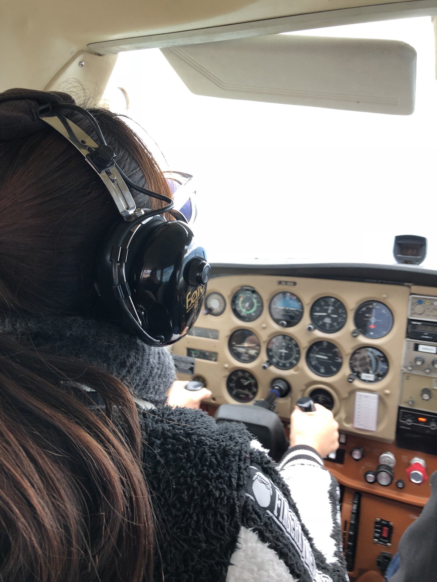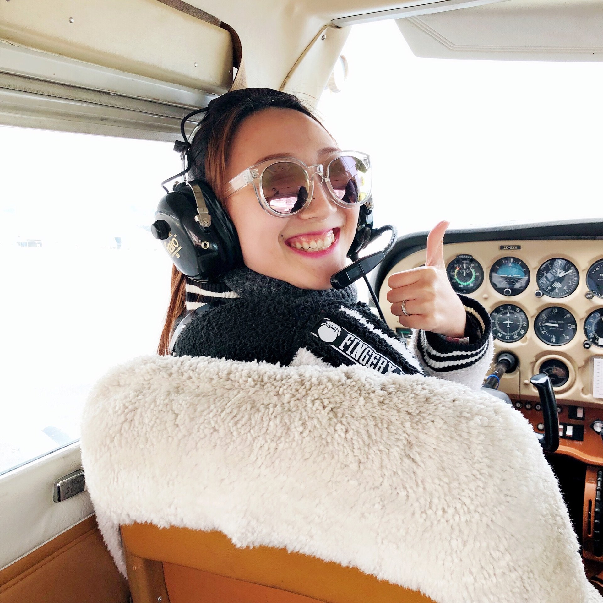 我坐在前排左边,教练坐在前排右边,SAM坐在后排。飞上天空和降落都是教练操控,在天空飞的时候是我操控的,说实话,吓死我了 ,全程紧张的不要不要的,最后下飞机的时候,我手脚都软了