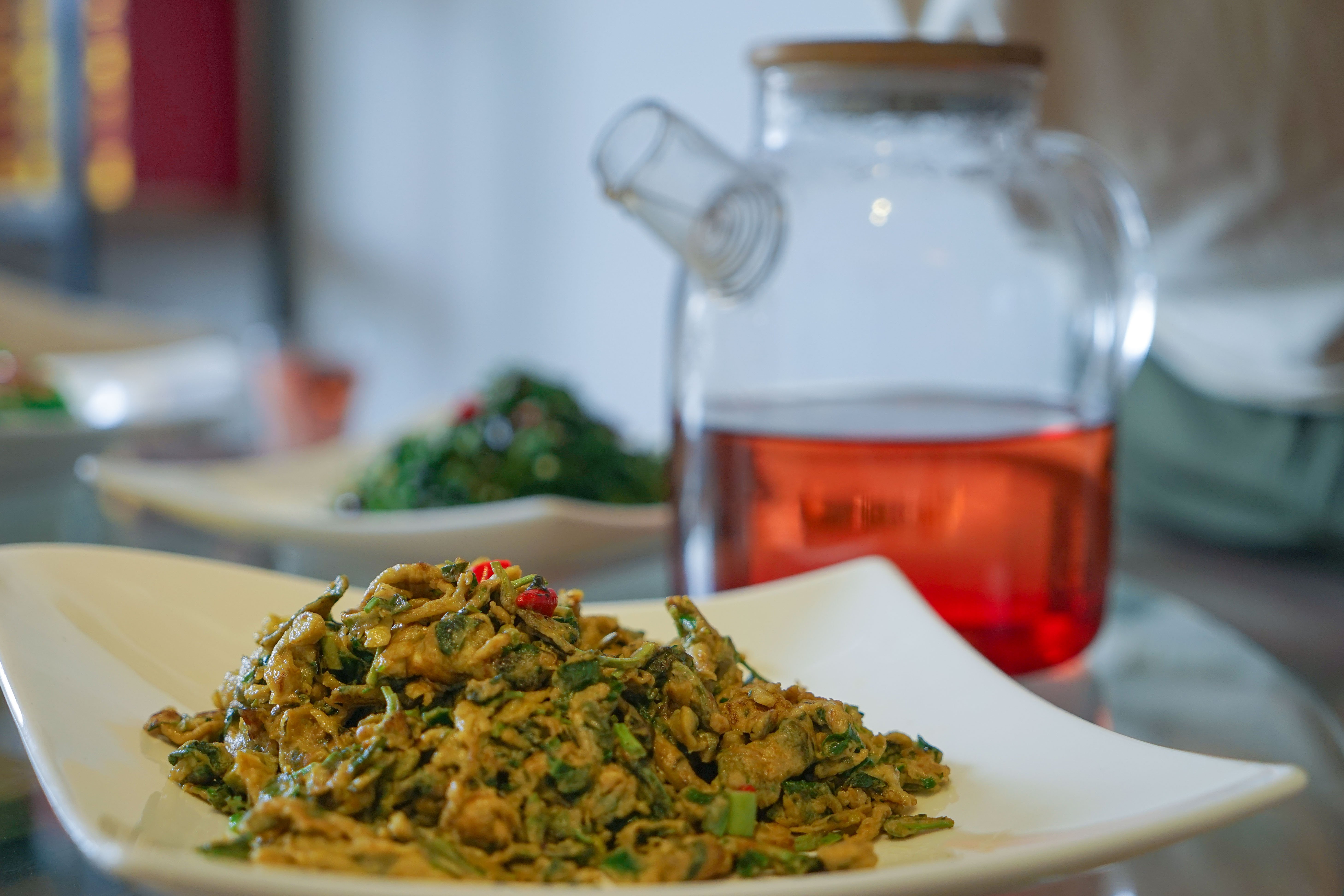 强烈安利他们家的这个茶水,店员说了两遍名字,然而记忆力搜索失败,一道不知道名字的植物泡出,口感酸酸的很清爽也很开胃。香椿鸡蛋不知道属不属于陕西特色,不过跟香椿一炒,鸡蛋均匀晕染了香椿的香气,口感更好,强烈安利。