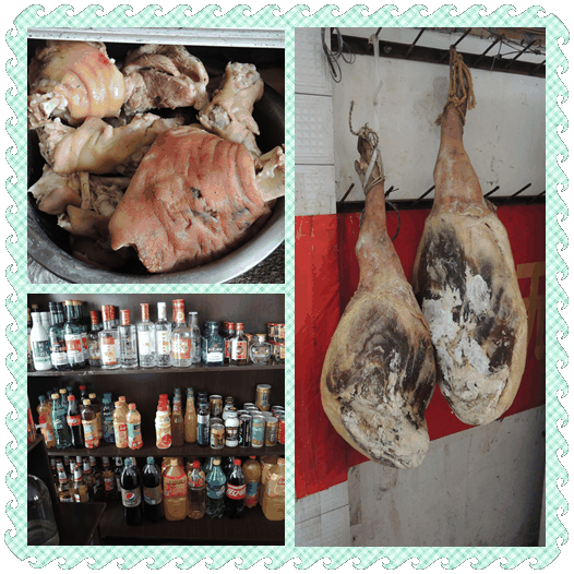 伙计说今天没有乌江鱼,我们很失望。他家冰柜里的肘子挺给力的,可太大了!酒水挺丰富的,最吸引紫檀的是挂在墙上的一对火腿,这就是著名的宣威火腿吗?瘦肉部分还挂着白霜呢,不知道是否也是咸得跟“盐不要钱似的”。