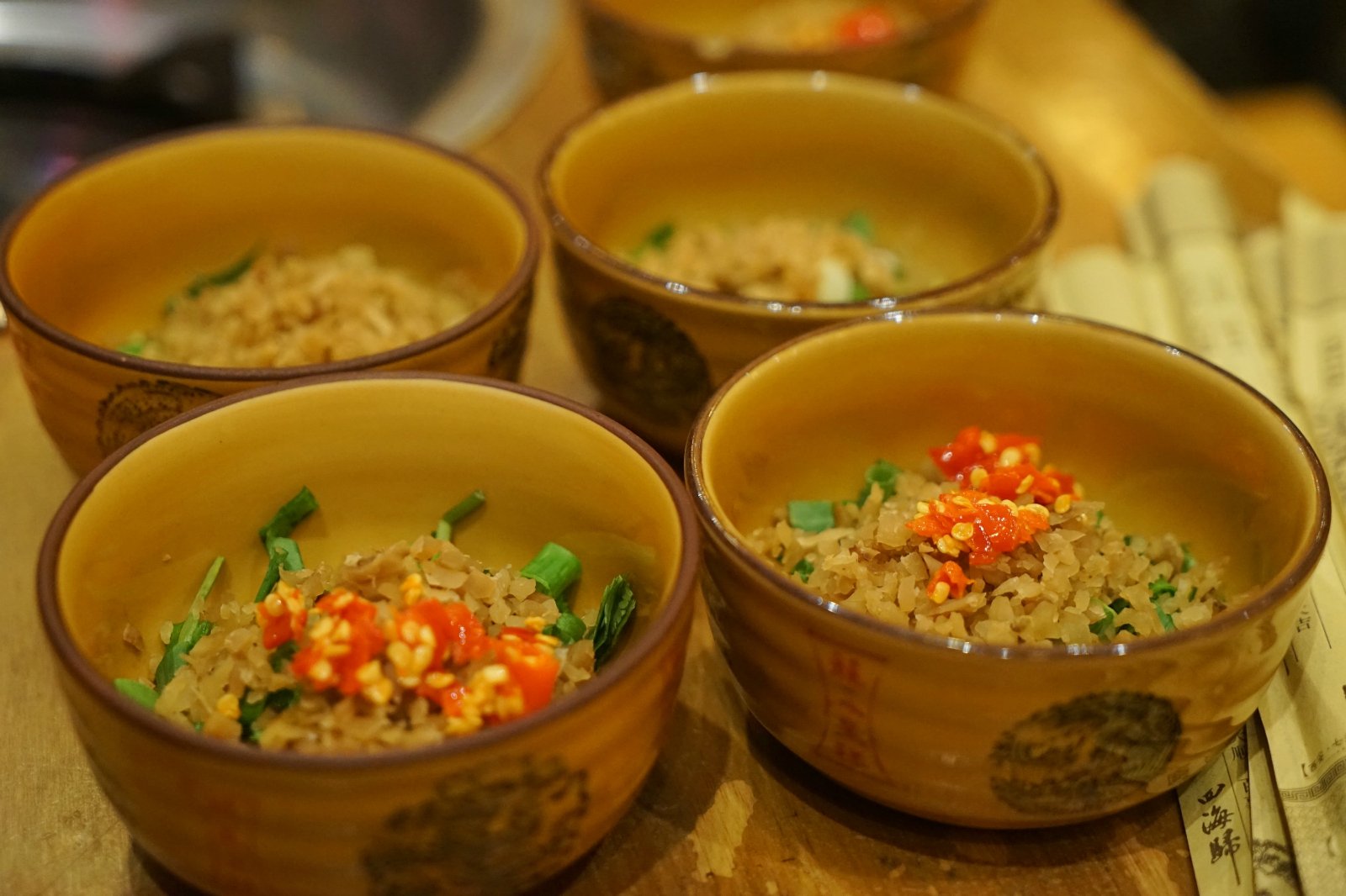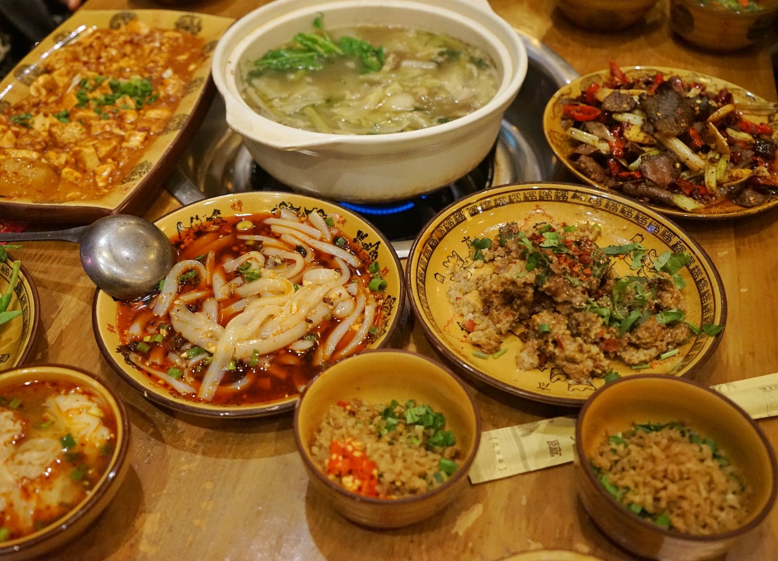 这家店是去成都旅游的时候,朋友推荐的,便搜索了附近的一家店,前来感受。这家店从装修到环境都可以说是古色古香,很有味道,颇有种农家小院的清闲感,在这边用餐很悠闲,颇有一番feel。这家店晚上8点过来的,用餐的人还是很多,不过不需要排队还是很好的,直接入座点餐。店家很热情,不断的安利他们家的菜品好,以及他们家的特色之处。成都的菜品每一道看上去都辣味十足,十分下饭,光看菜单,就忍不住咽口水了。