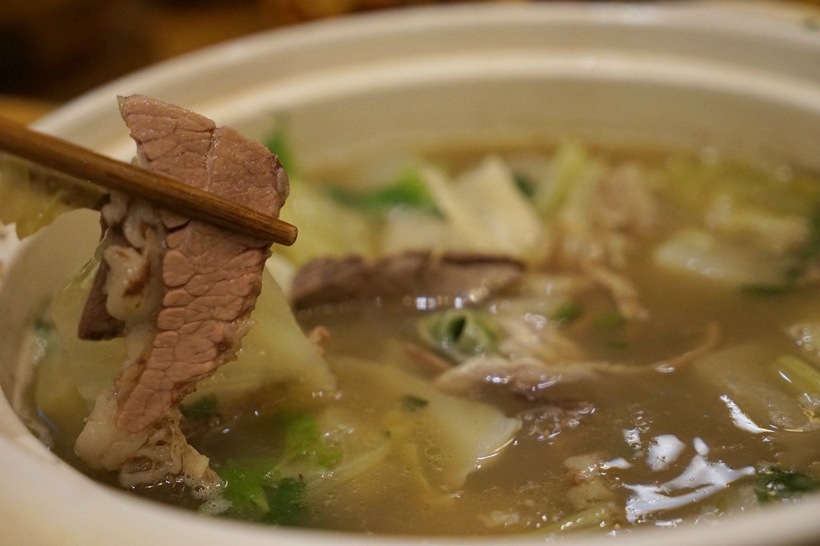 下好单后,等了大约20多分钟便陆续上餐,虽然用餐的人很多,很是能保证上菜,这一点还是很好的。他们家的招牌便是牛肉小汤锅,味道比较清爽,不能吃辣的小伙伴也可以一同用餐。店家有自制的调料碗,如果想重口,要个辣碗即可。牛肉被炖的很软,骨肉若即若离。开吃前,一定要呈碗牛肉汤开胃暖胃。