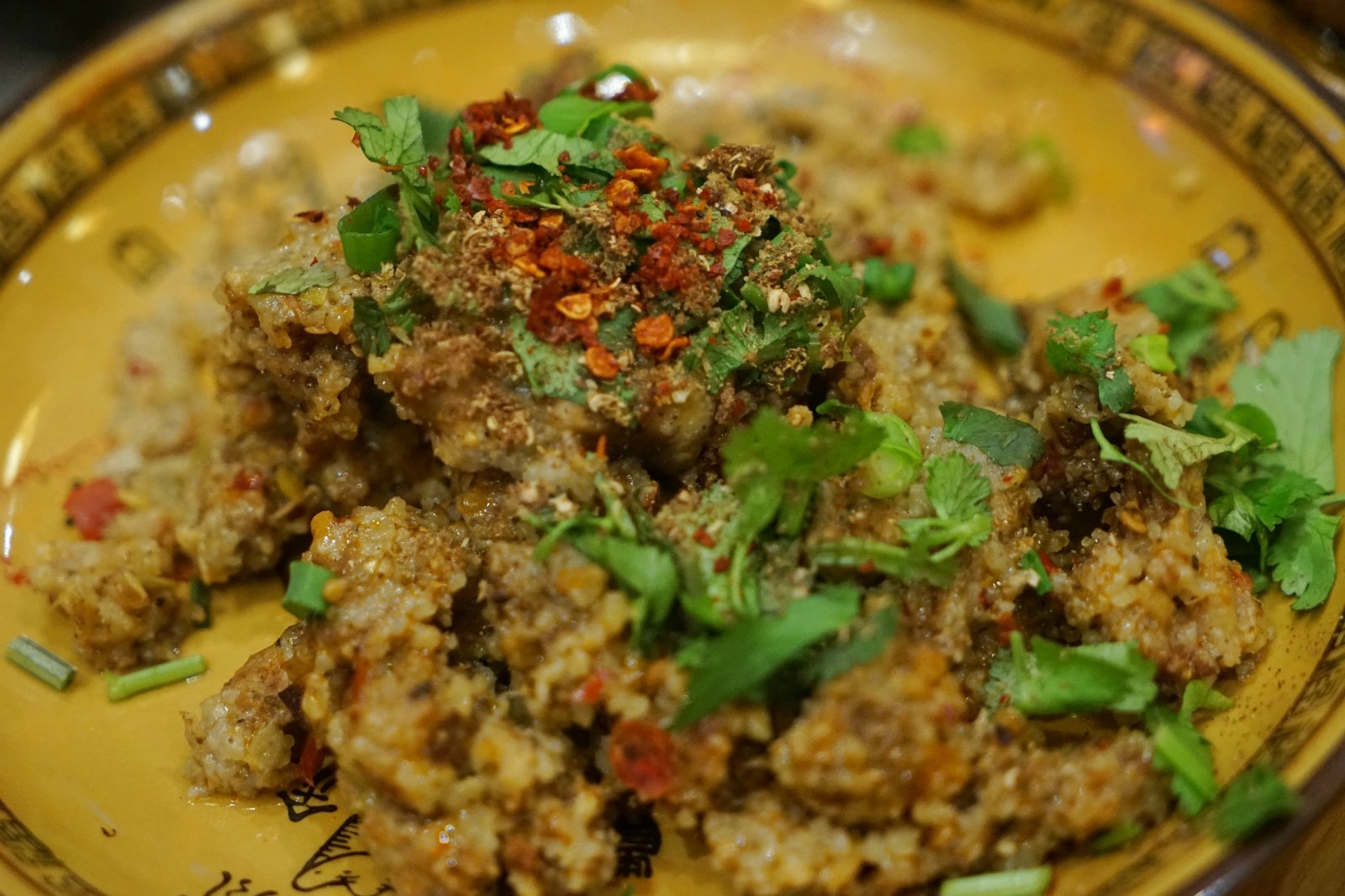 这道菜名为拼蒸,第一次听到,还是感觉很神奇的。听名字,感觉像是蒸出来的,口感应该比较清淡,家里有老人一同用餐,便为老人点了这道菜。上餐感觉就像是粉蒸肉,加入了辣椒调味,口感也不错。