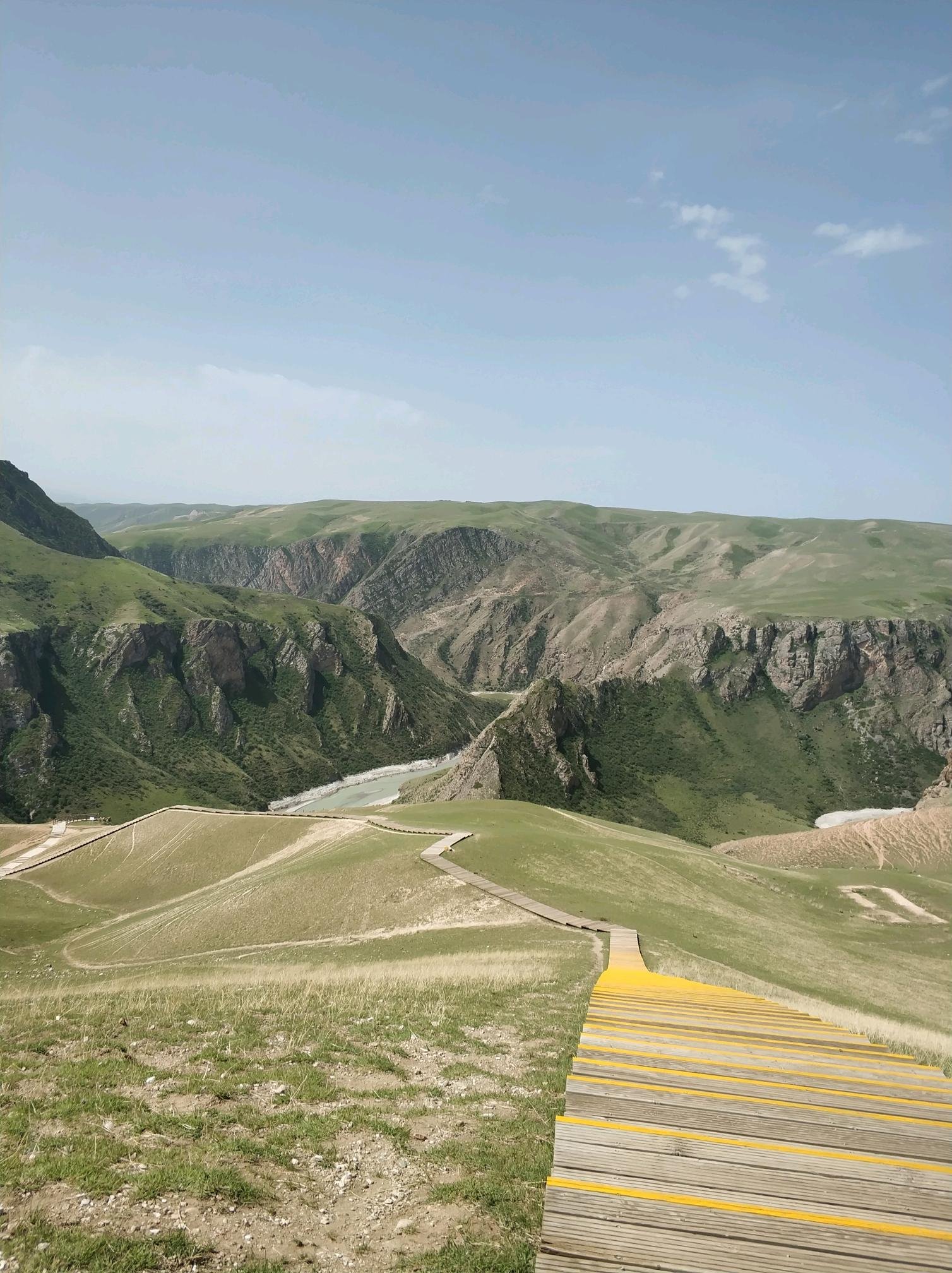 在美团上买的票,喀拉峻阔伦苏大峡谷,往返区间车加船票170/人。山上光秃秃的,和想象中的大草原不大一样,有点失望。只有一个鳄鱼湾,没什么看的,拍几张照就走了。