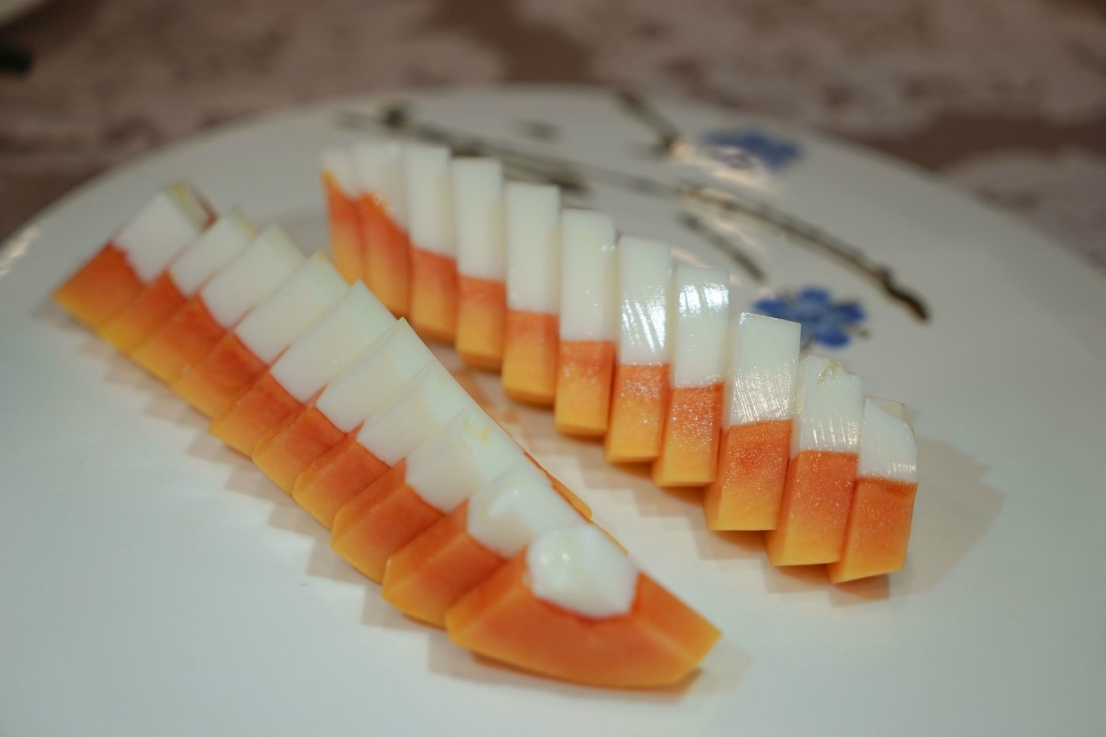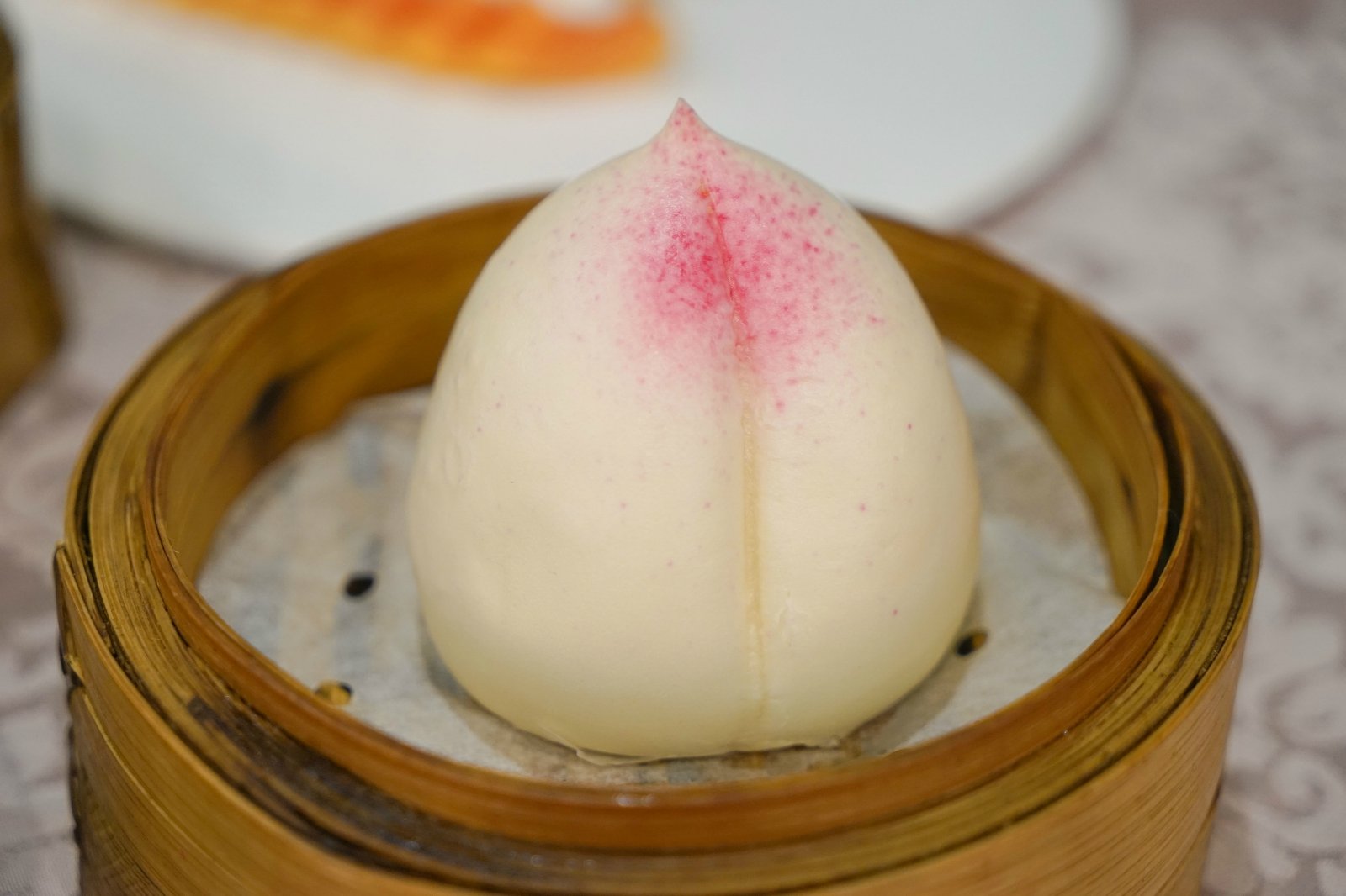他们家的广式茶点味道还是比较正宗的,比较推荐他们家的虾饺、蛋黄包、木瓜冻、蒸凤爪,这四道也是每次来他们家用餐必点的。木瓜冻很适合当餐前甜品,甜而不腻,很是开胃。冰冰凉凉的也很适合夏天吃。看到他们家新出了一道蛋黄包,之前没有尝试过,便也来了一个,寿桃的造型,如果是有朋友过生日聚餐,点这个还是很喜庆的。里面加裹着一个大大的咸蛋黄。